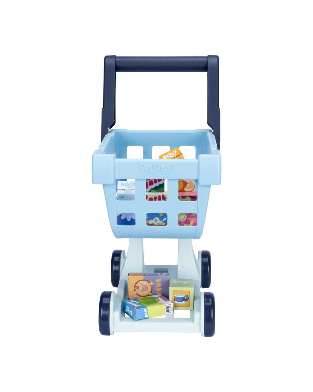 The Bluey Shopping Cart really rolls and carries all your little one's shopping goods!Comes with 8 colorful shopping goods for children to fill their cart with!Stands at 19.3" tall, perfect height for toddlers - handle rotates down for storage.The Bluey Shopping Cart is the perfect toy to go with the Bluey Cash Register (sold separately).Bring Bluey's world to life with a range of figures, playsets and accessories.Contents
