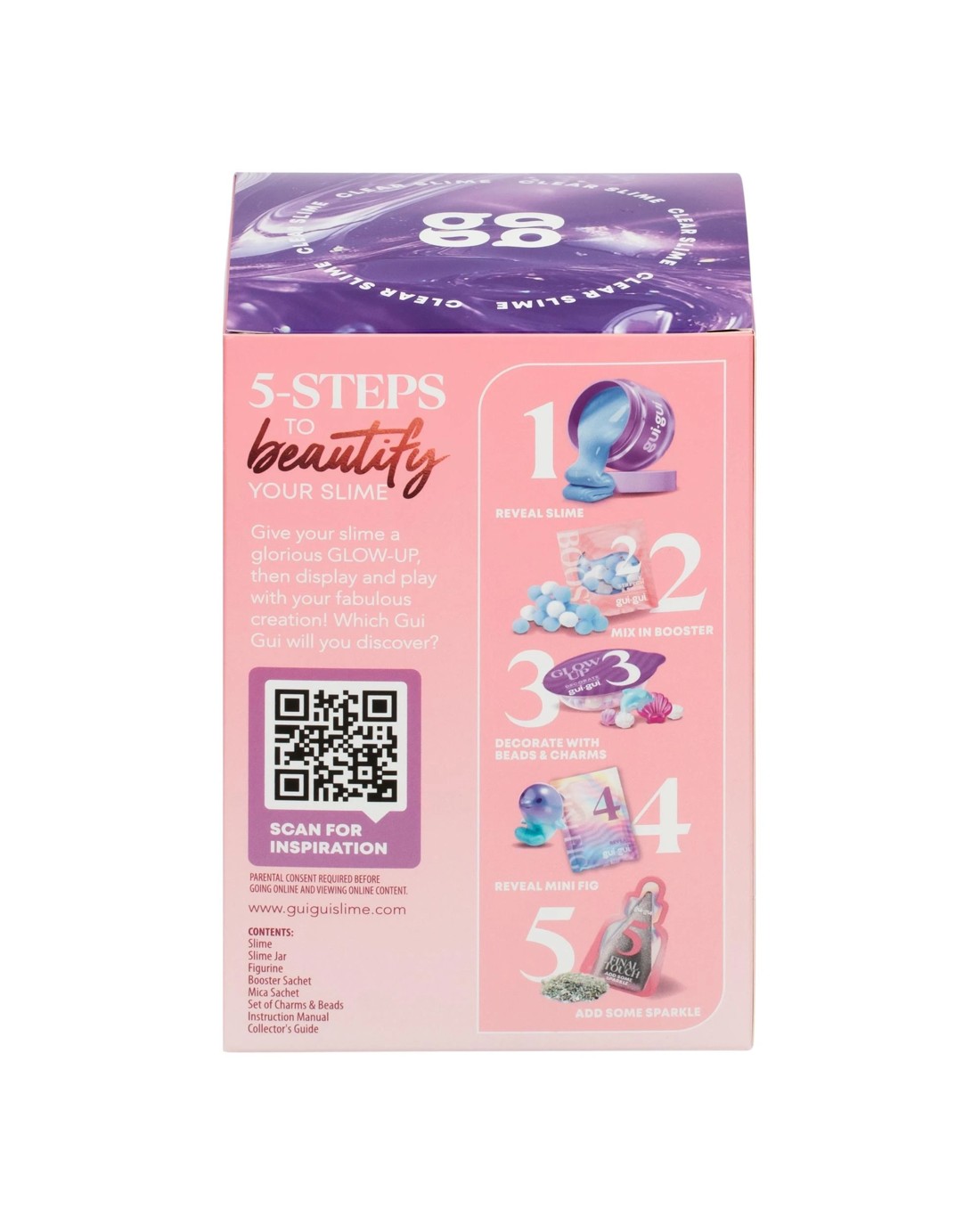 • Beautify in Five! Gui Gui is the ultimate slime experience you've been waiting for! Follow the 5 easy steps to slay your scented slime styling for a major GLOW-UP. From sparkling charms to surprise figurines, every unboxing is packed with excitement and glam vibes. Mix, glow, and create your dream textures, from buttery smooth to cloud-soft, all infused with irresistable scents. Ready to flex your slime game?