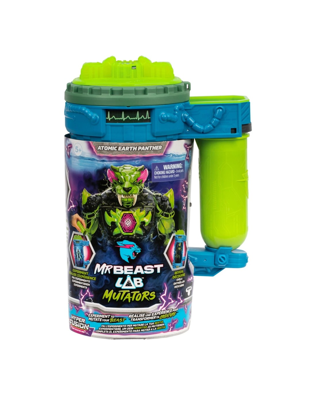 Unleash the Power of Hyper Fusion with MrBeast Lab Mutators.  MrBeast Lab Mutators are back and more epic than ever before! Get ready to dive into the Hyper Fusion Series, where Earth, Fire, and Lightning collide to create high-energy action figures waiting to be revealed. Your child steps into MrBeast's Lab, taking on the challenge of unlocking and unleashing their very own Hyper Fusion Mutator. If they're ready for the task, they'll add the mutation fluid to the Mutation Chamber, press the fingerprint scanner, and watch as their Panther comes to life before their eyes! Fused with unbreakable rock and atomic power of Earth, the Atomic Earth Panther is ready to erupt! Prepare for non-stop intensity as the Atomic Earth Panther stands 5.5 inches (14cm) tall, features over 20 points of articulation, and showcases MrBeast's signature lightning bolt. Built for intense battles, epic showdowns, and nonstop excitement, this Mutator is ready for action. With an epic reveal process, there are three powerful Mutators to collect including the menacing Lightning Panther and the destructive Fire Panther, plus with endless ways to play, the Hyper Fusion Series delivers hands-on thrills that spark creativity and adventure. Add the mutation fluid, press the fingerprint scanner, and reveal your new Hyper Fusion Atomic Earth Panther Mutator today—let the battle begin! Ages 5 +
