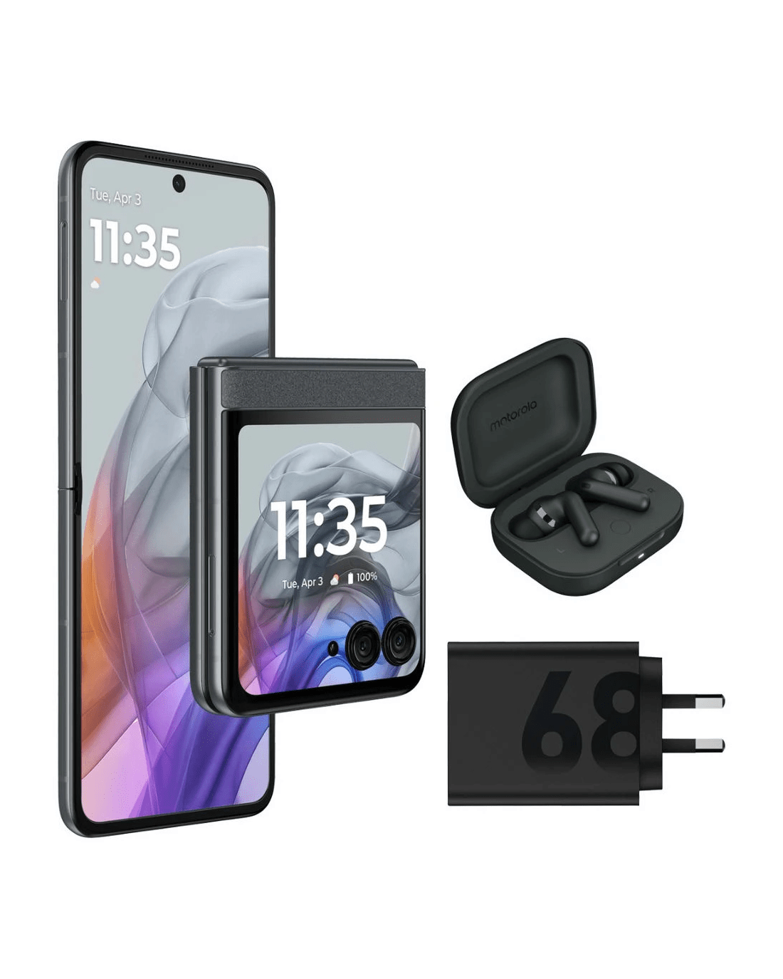 - Get a bonus pair of Forest Grey moto buds + and a 68W charger with your phone.