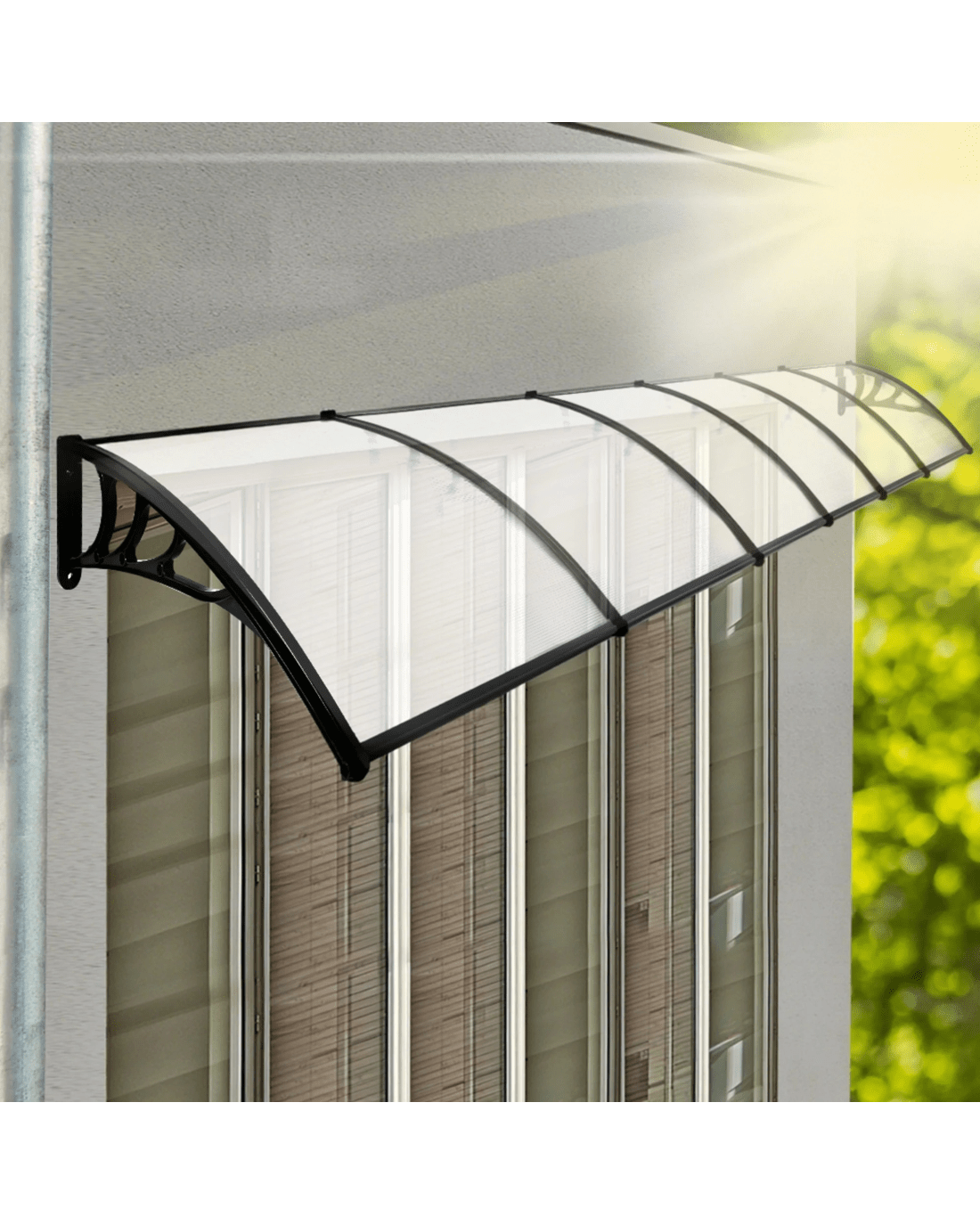 Built with a strong and weather-resistant structure, this canopy is designed to endure the elements while maintaining its sleek, modern appeal. The curved design enhances water runoff, preventing pooling and ensuring a dry and safe entryway. Engineered with anti-corrosion materials, it requires minimal maintenance, making it a hassle-free solution for those seeking long-term durability. With a simple installation process, you can quickly upgrade your space with effective sun and rain protection.