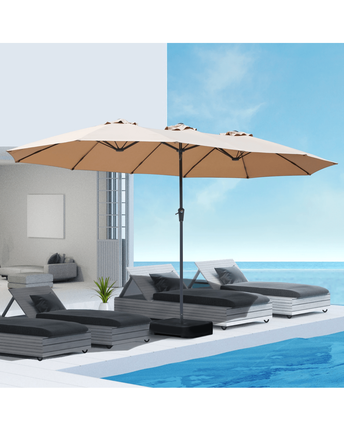 Sold by Sello ProductsMountview 4x2M Outdoor Twin Large Patio Umbrella with Base - Beige