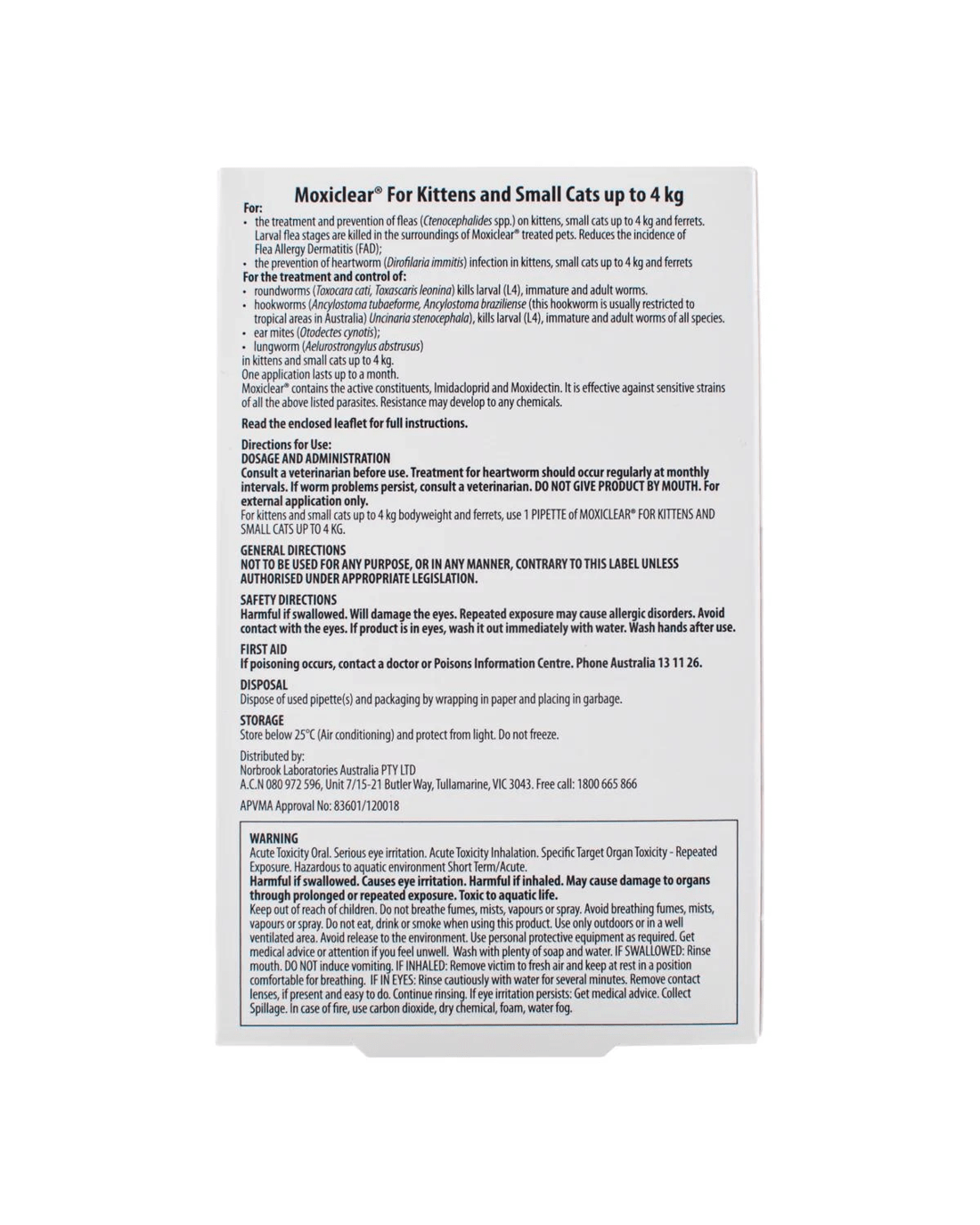 Moxiclear’s combination of Moxidectin and Imidacloprid has been shown to be safe in kittens when given from 9 weeks of age.