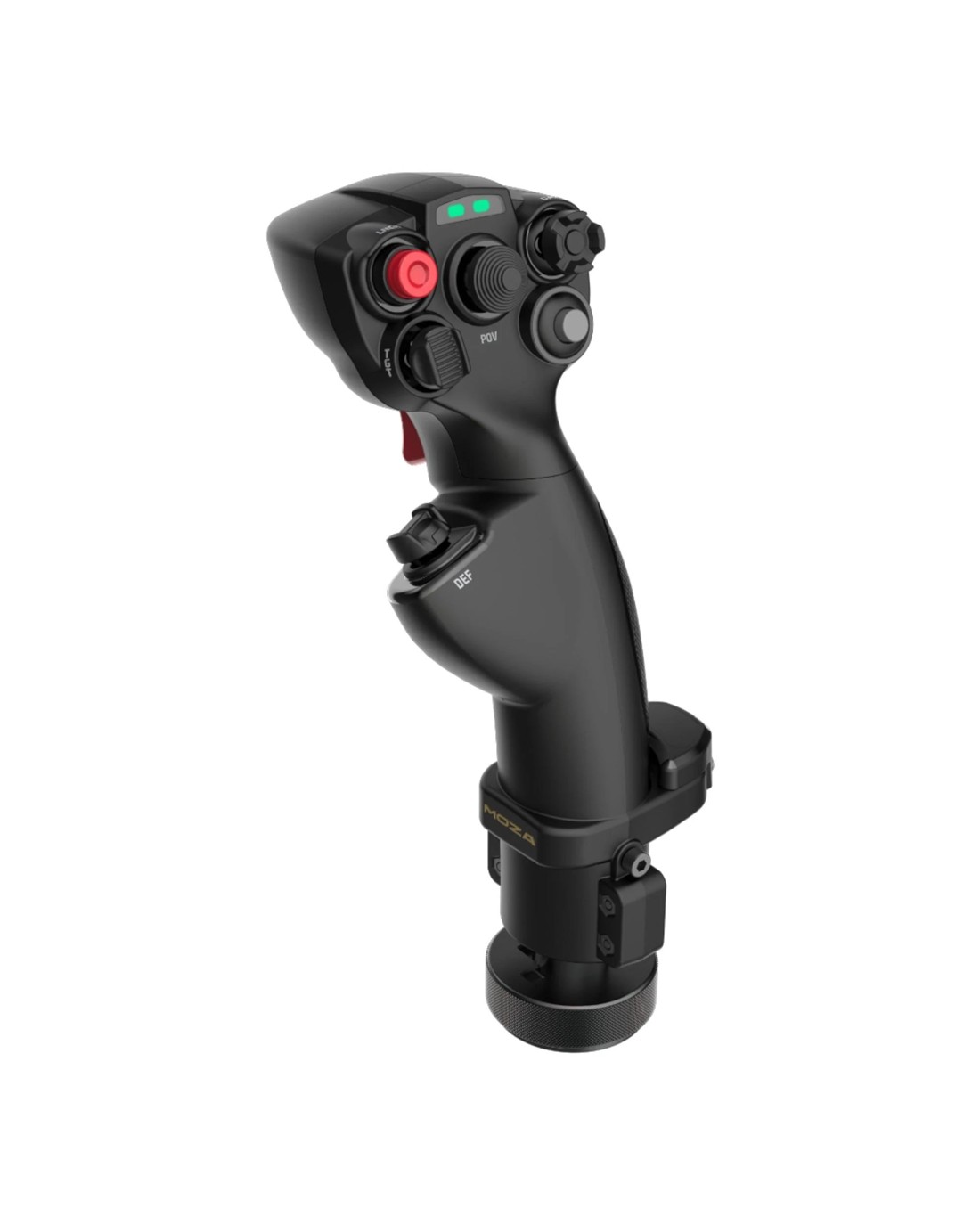 The MOZA MHG flightstick features a universal mechanical connector, fully compatible with MOZA flight bases and supports angled installation.