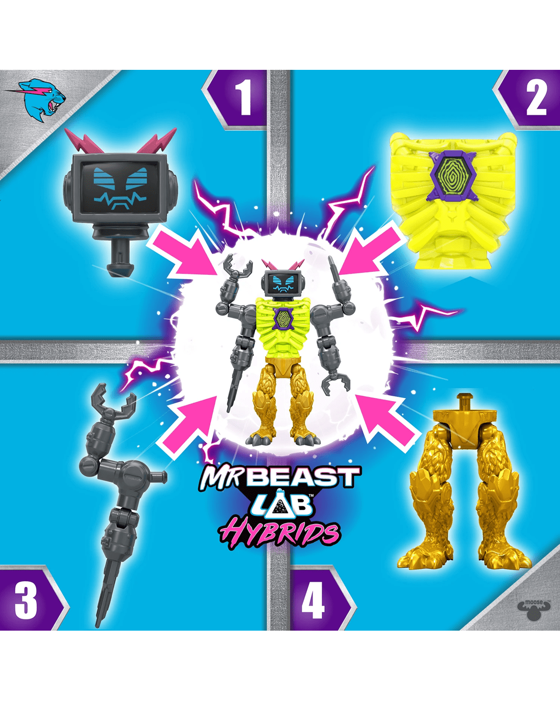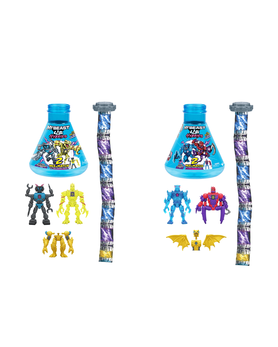 - Millions of combinations: MrBeast Lab Hybrids, action figures with 'Mix & Match' parts and fuse millions of Beast combinations to create the ultimate Hyper Fusion Beast