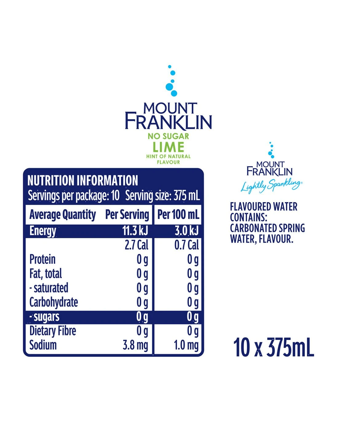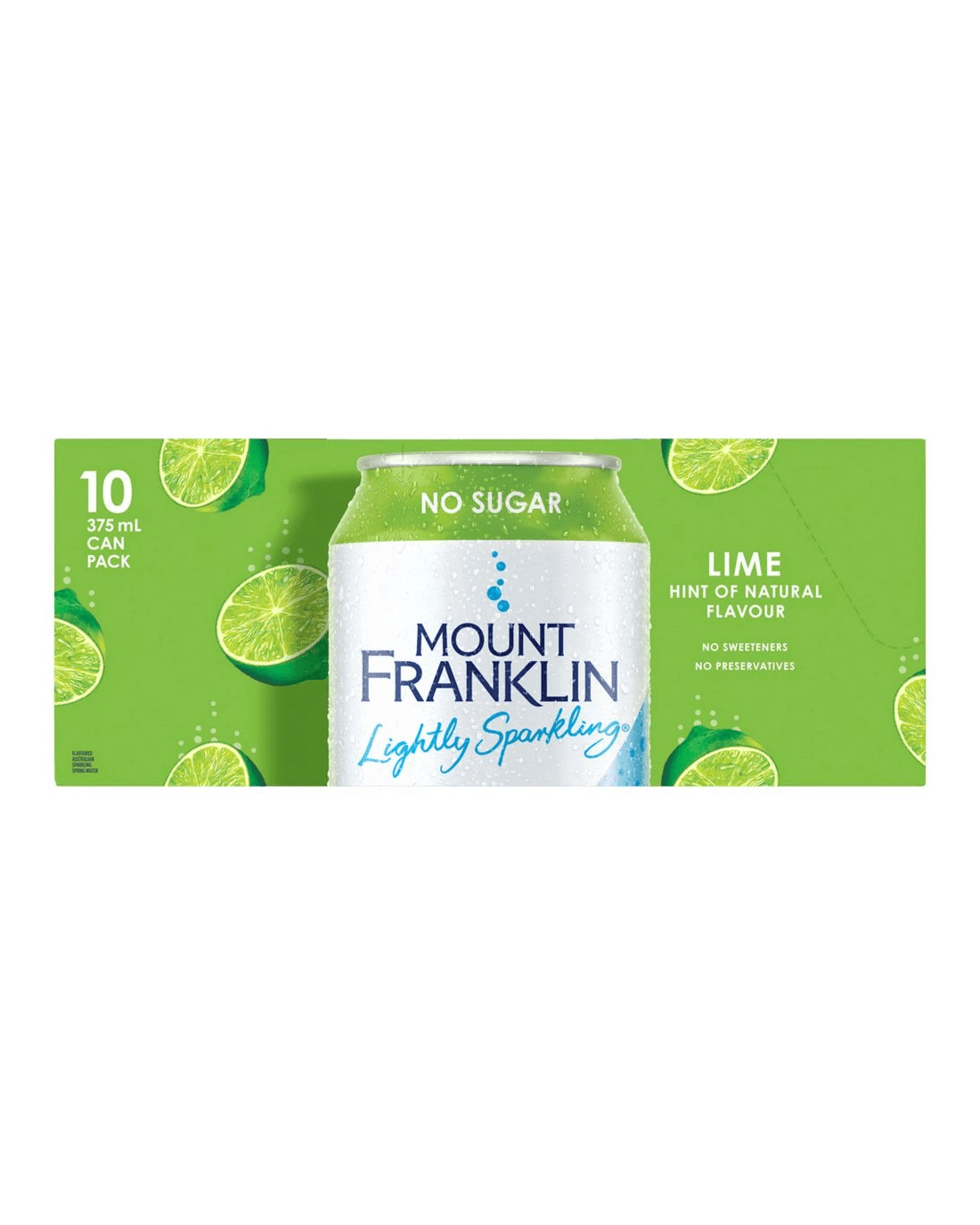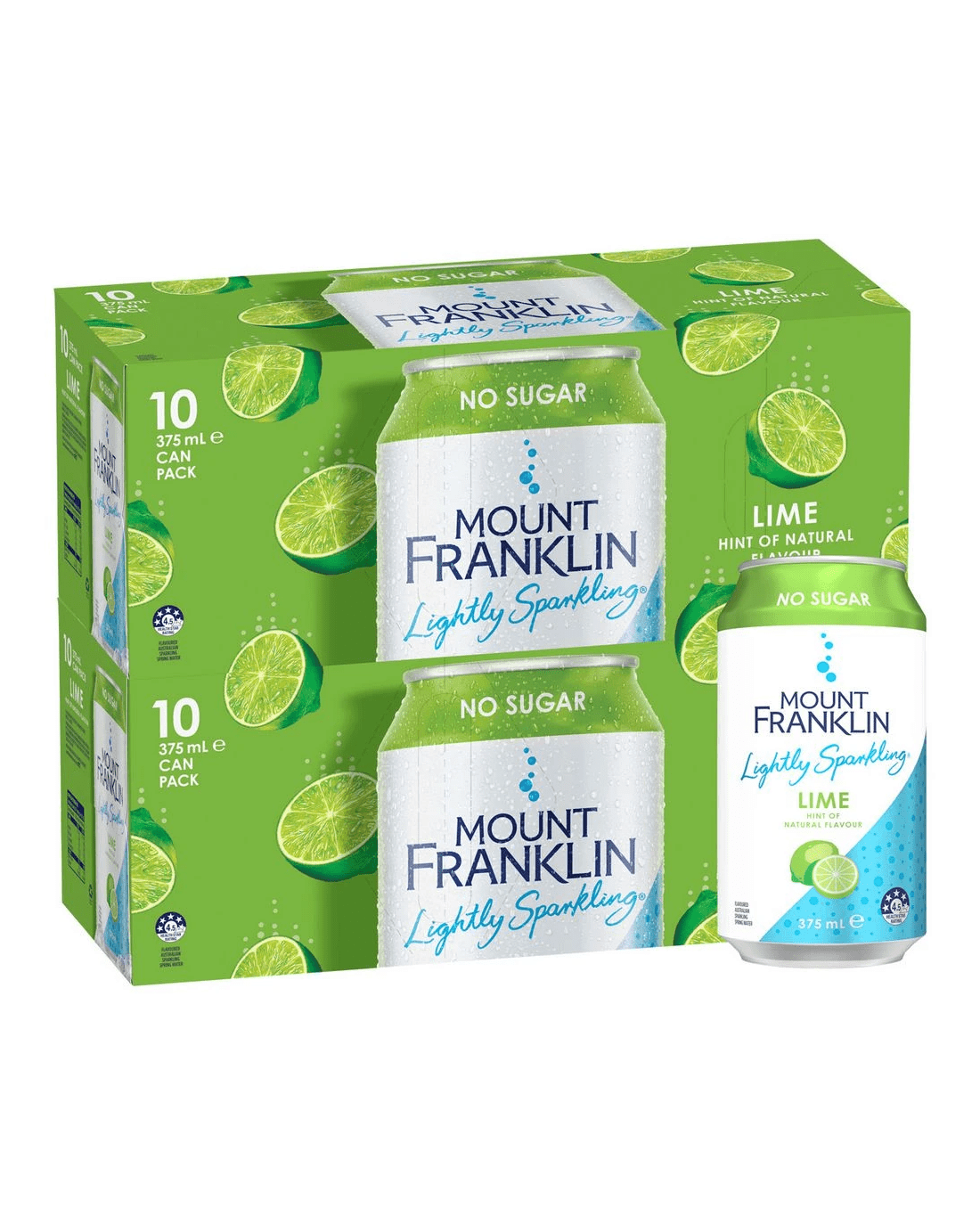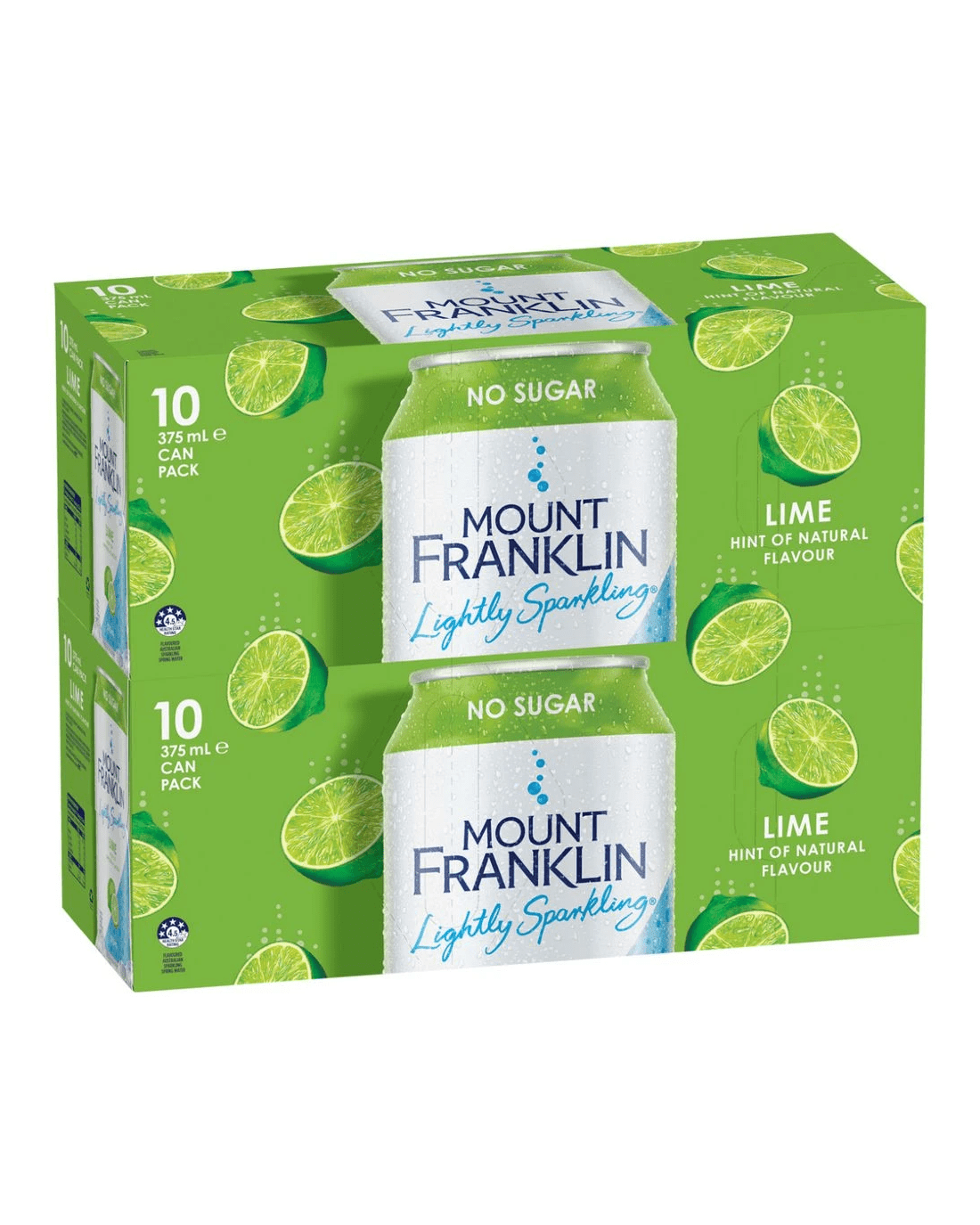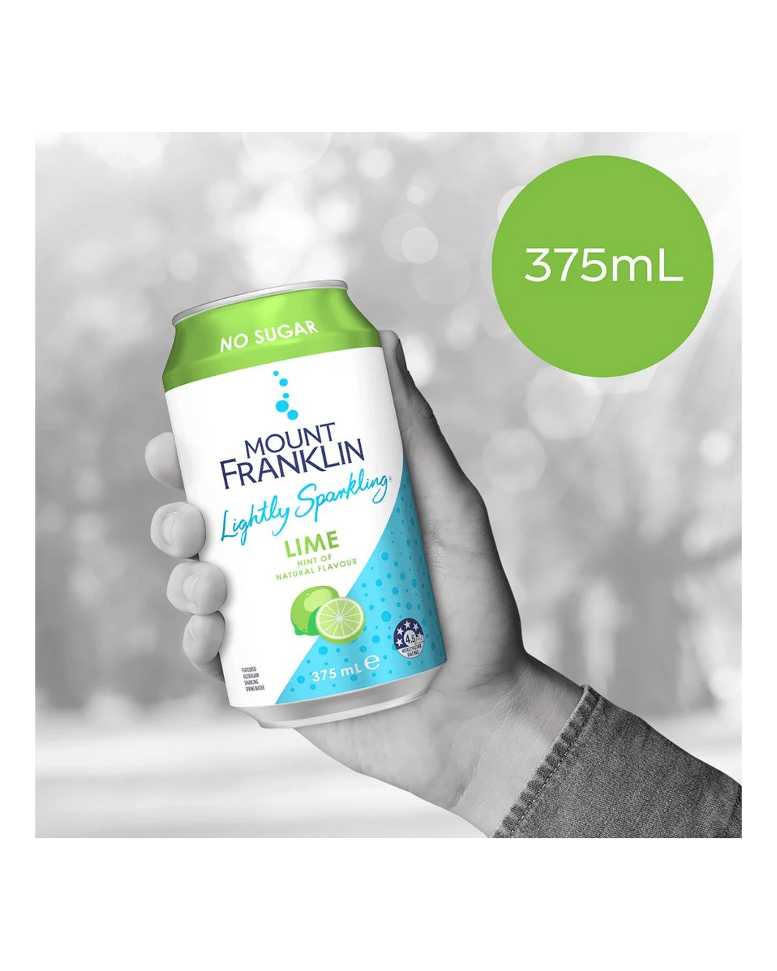 Sold by OfficeworksMt Franklin Lightly Sparkling Lime Cans 375mL 20 Pack