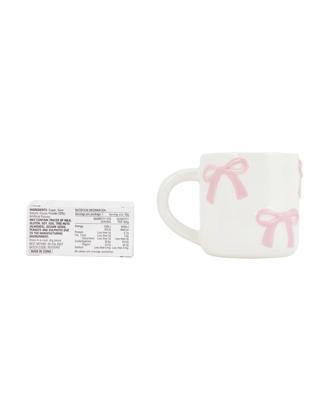 • Ingredients: Sugar, Corn Starch, Cocoa Powder (12%), Artificial Flavour