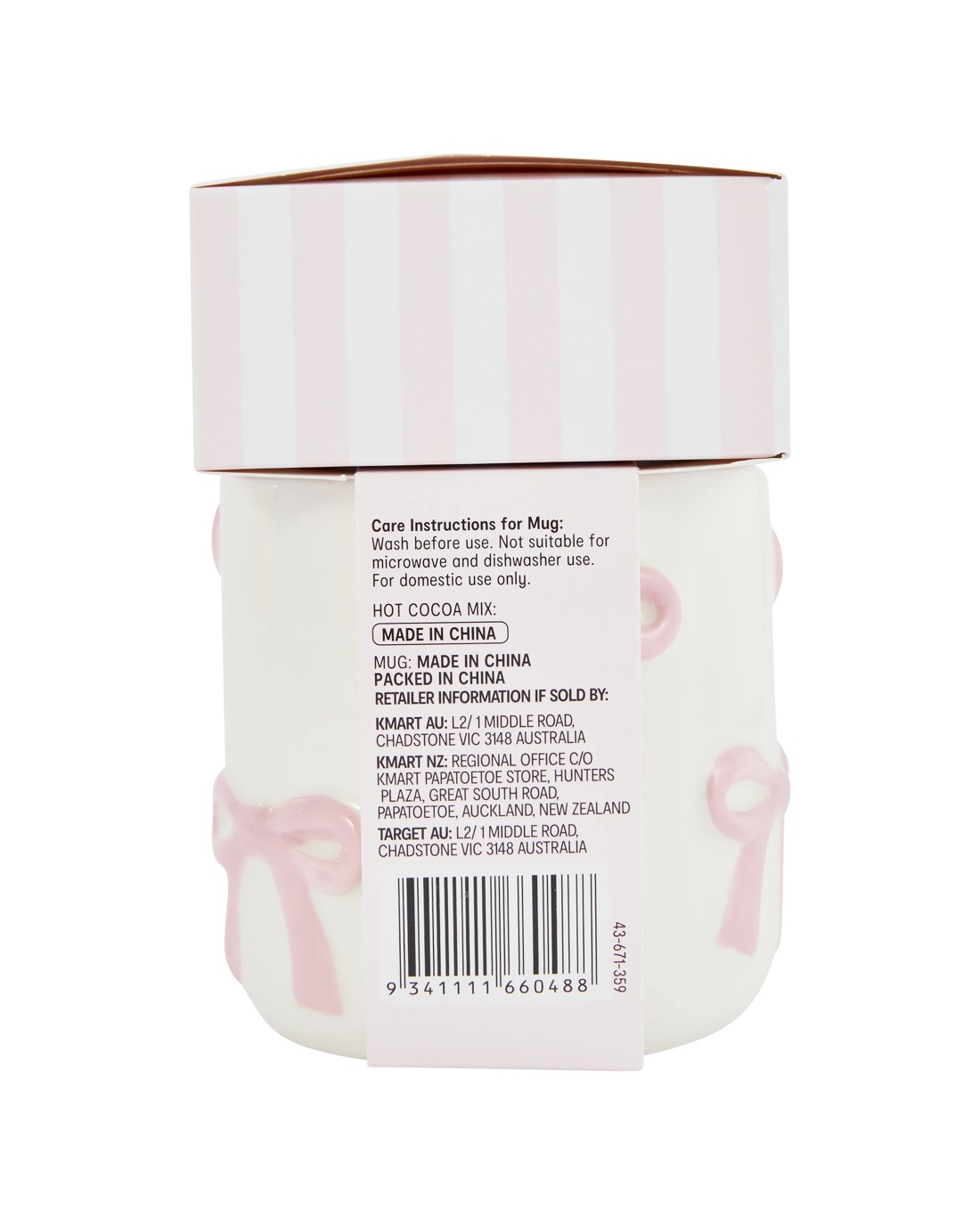 • Not suitable for microwave and dishwasher use (Mug)