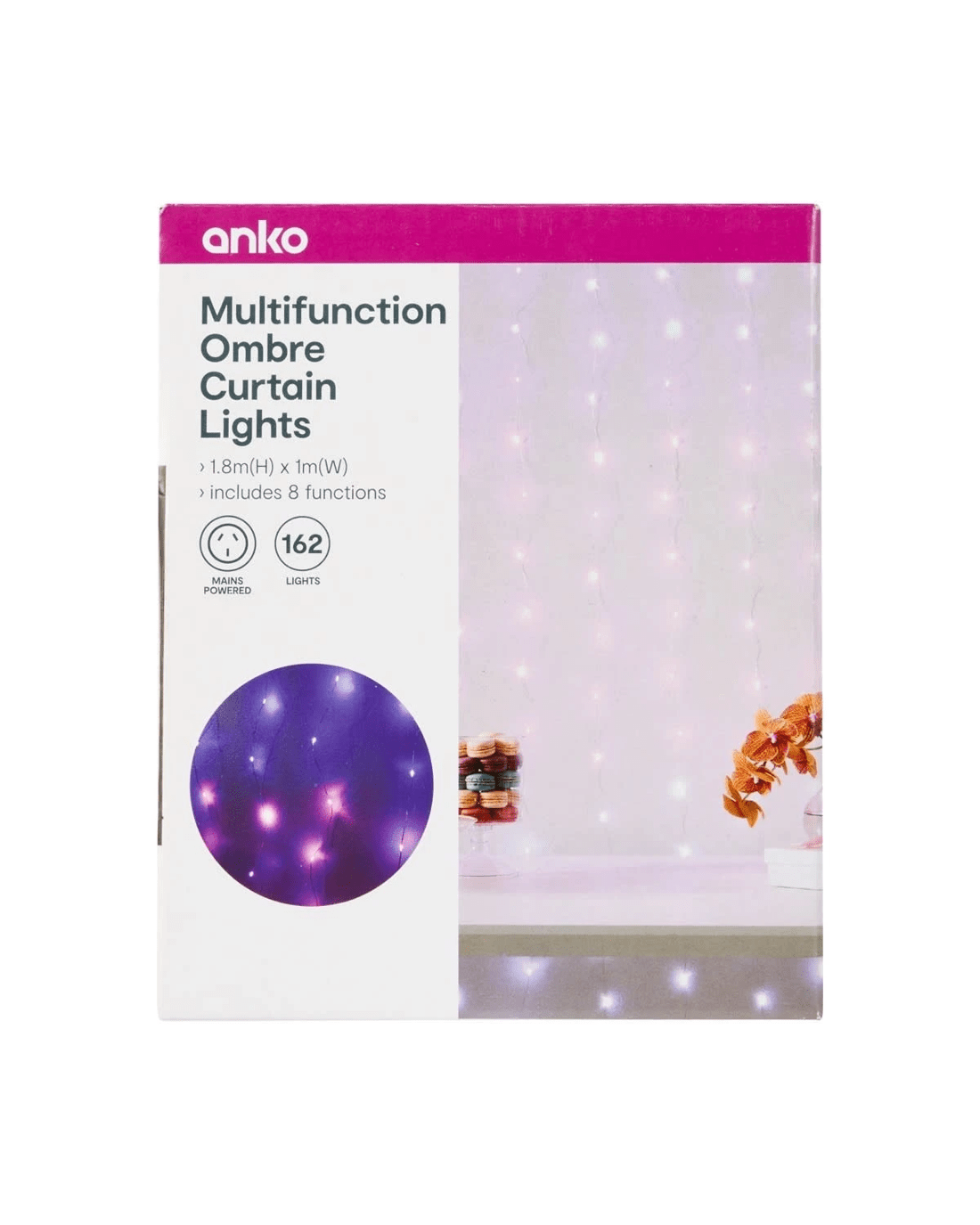 Create a magical atmosphere indoors or outdoors with these Multifunction Ombre Curtain Lights. Featuring pink and purple lights that create a stunning ombre effect, these string lights will make the perfect backdrop for any celebration or cozy gathering.