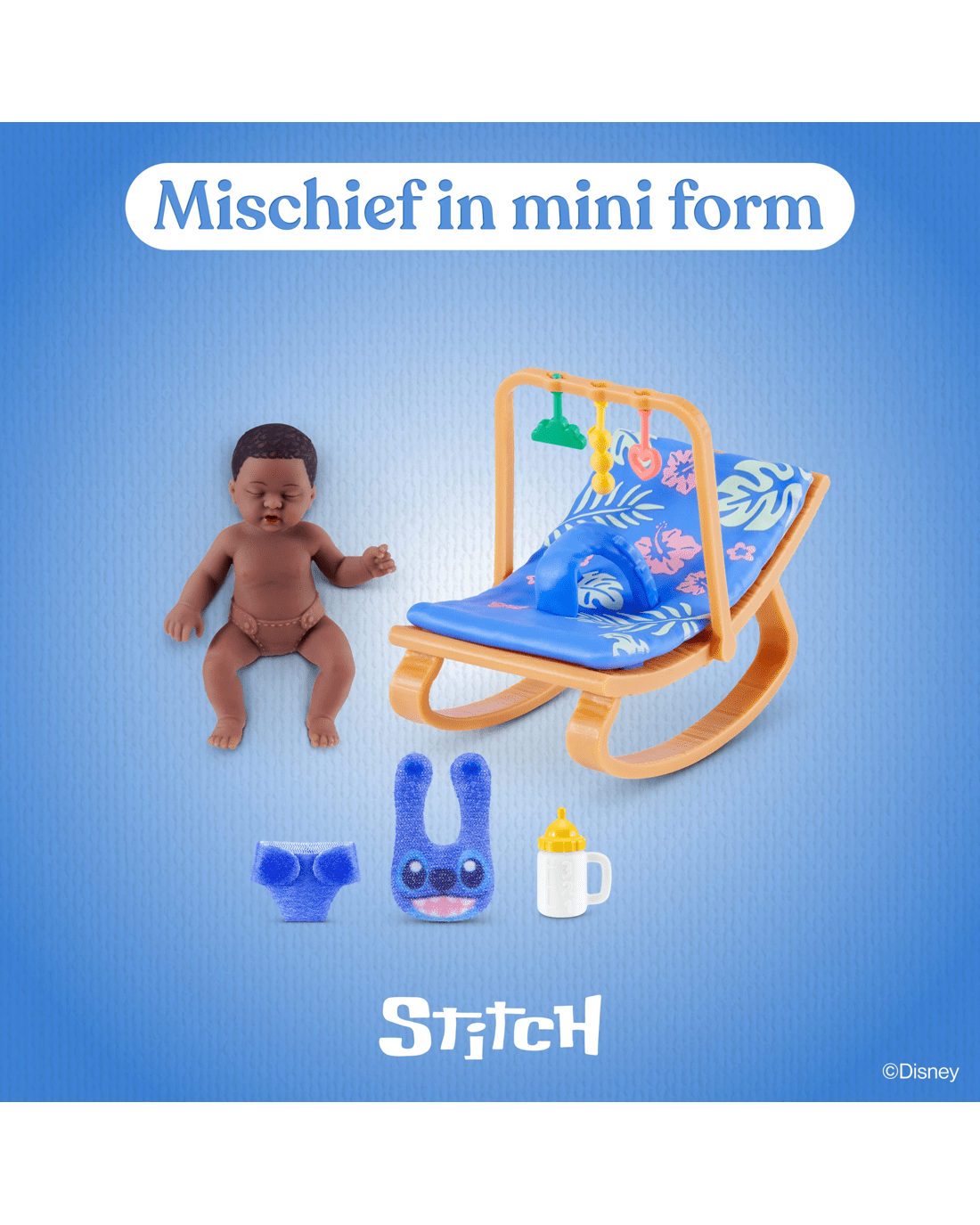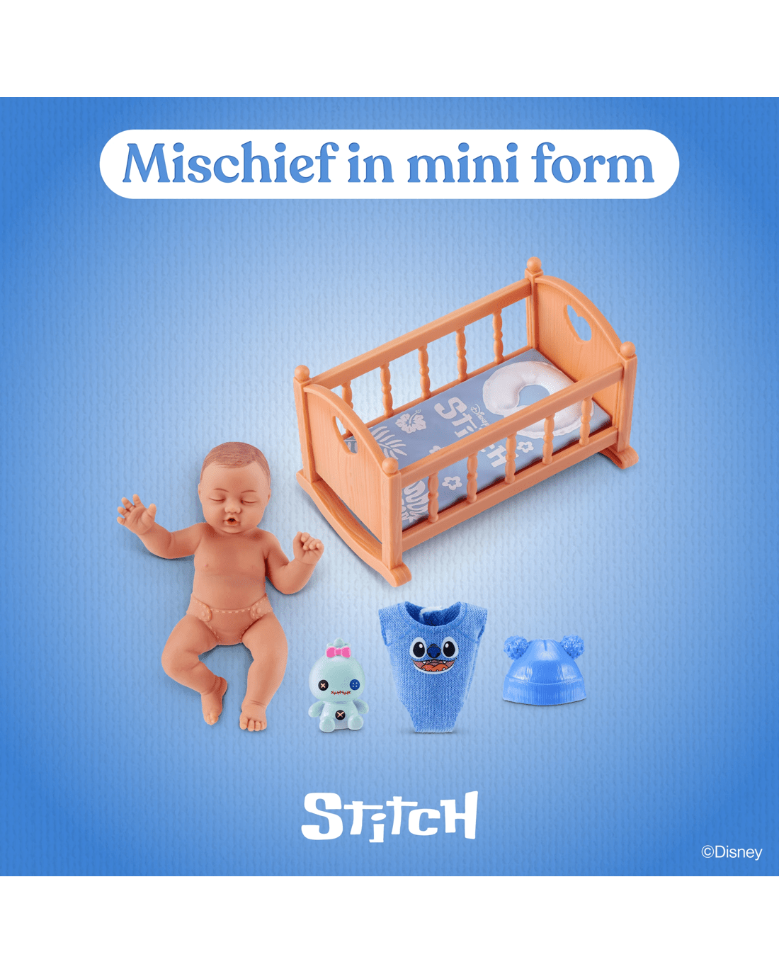So real. So mini. So Disney! The magic of Disney meets the charm of surprise collectibles in My Mini Baby Disney Series 1 by ZURU. Each capsule contains one ultra-realistic mini silicone baby doll, complete with soft skin, hand-painted details and surprise Disney-themed accessories inspired by beloved characters like Stitch, Moana and Winnie the Pooh. Inside, discover a mini playset tailored to your baby's theme, maybe it's a Moana stroller, a Winnie the Pooh highchair or a Stitch-inspired crib. With six different babies and playsets to collect, every unboxing is a new adventure packed with heart and imagination. Perfect for children 3+, collectors and Disney fans alike, these tiny bundles of joy bring magical play to life. Whether you’re expanding your mini nursery or gifting a moment of wonder, My Mini Baby Disney Series 1 is the ultimate mix of cuteness, creativity and collectible fun.