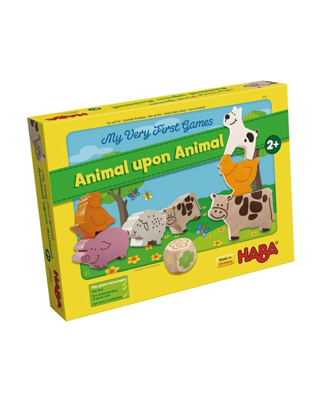 The animal stacking game, now for toddlers! This is a very basic game for very small children. You roll the die and stack the given animal on the matching tile and any other animals already stacked on that tile.