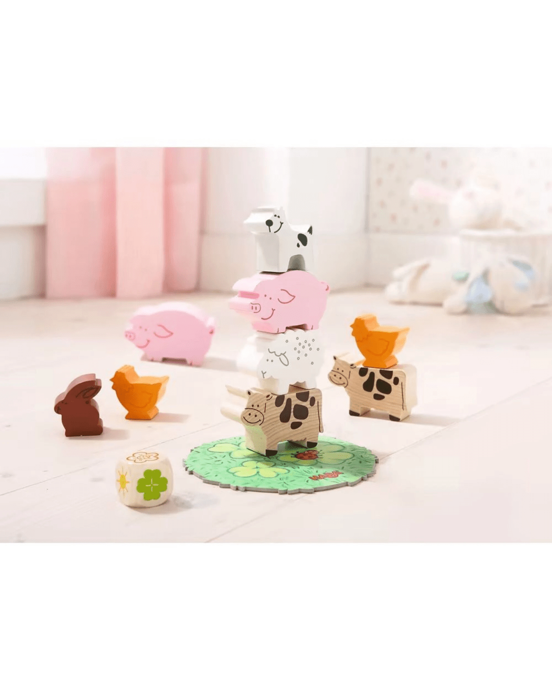 Who can stack the hen on top of the sheep? And is there any space left for the dog?