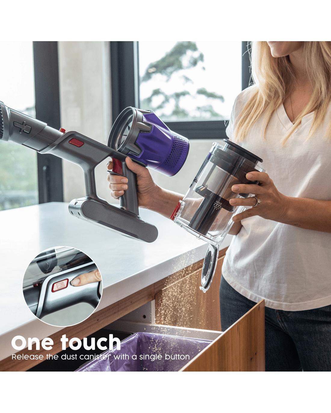 With a removable 2200mAh battery delivering up to 60 minutes runtime, an LED touch control panel, and a triggerless anti-fatigue design, the Sentinel makes cleaning easier than ever. The redesigned LED turbo floor head lights up hidden dust, while the HEPA filtration system captures allergens for fresher air.