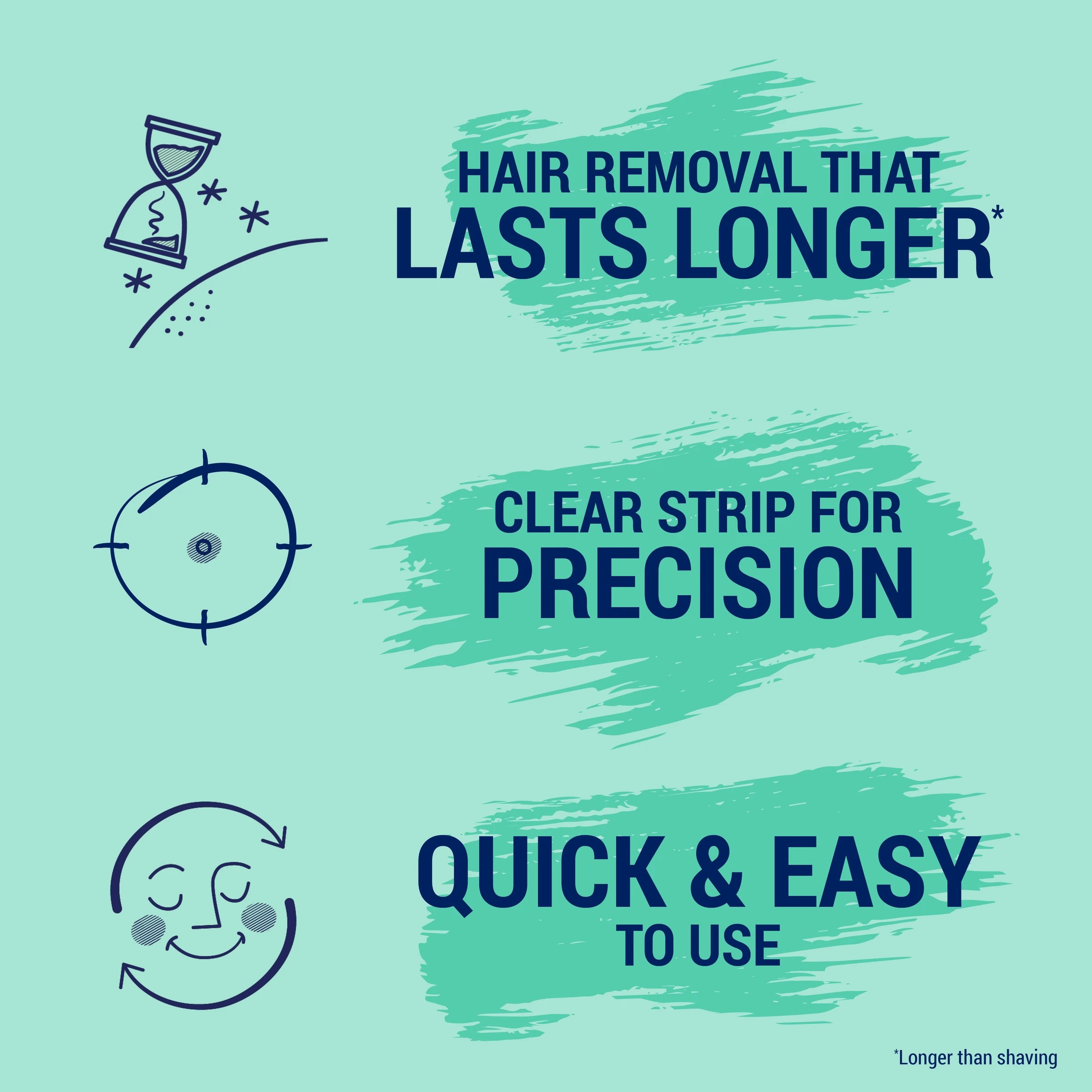 • Wax strips: Triethylene Glycol Rosinate, Glyceryl Rosinate, Microcrystalline Wax, Chamomilla Recutita (Matricaria) Flower Extract, Glycine Soya (Soybean) Oil, Bisabolol, Helianthus Annuus (Sunflower) Seed Oil, Achillea Millefolium Extract and Fragrance
