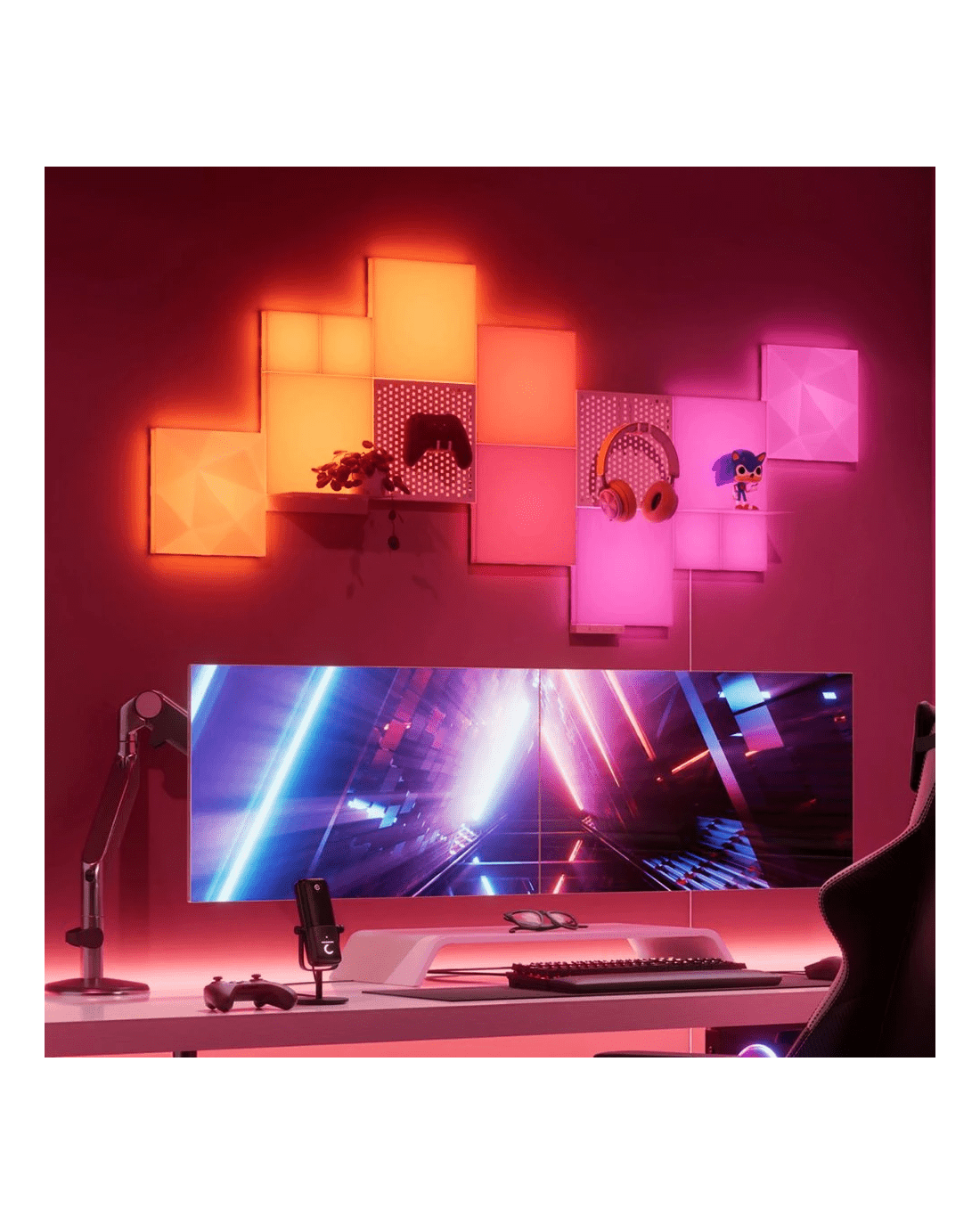Add some stylish lighting to your setup with these Nanoleaf Blocks. They have a modular design, meaning you can arrange them anyway you want and enjoy edge to edge illumination. This pack comes with 2 panels to add to your starter set, so you can create your own pattern that pops off the walls of your area.
