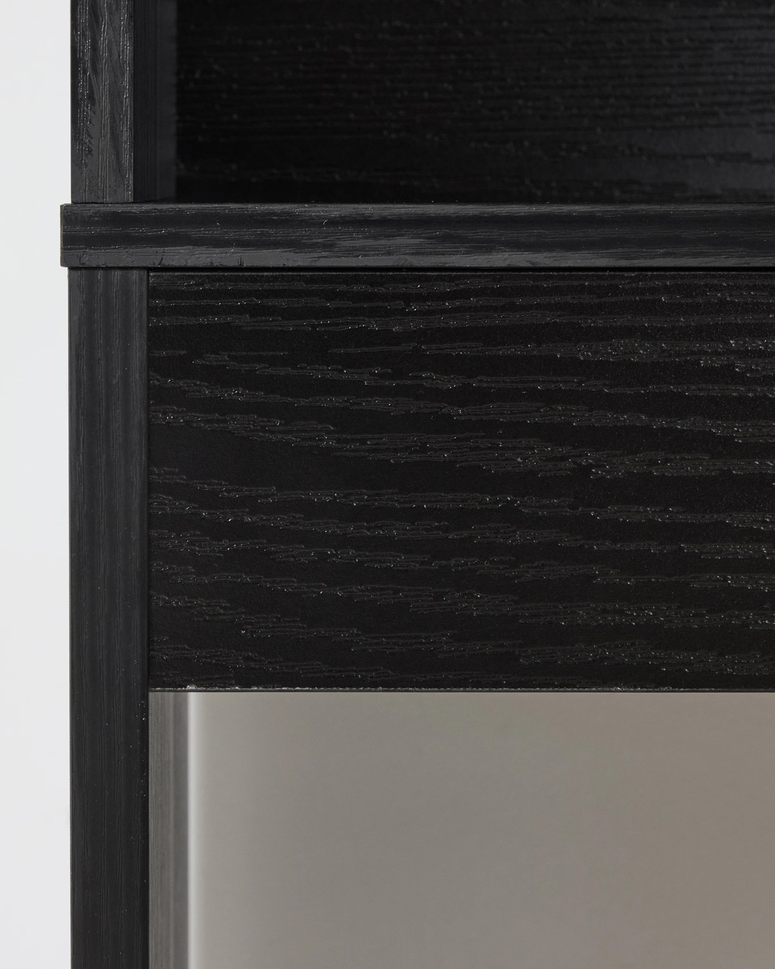 Black Slatted Panelling: Featuring vertical slatted door fronts in a sleek black finish, this cabinet creates visual interest while maintaining a refined, contemporary look.