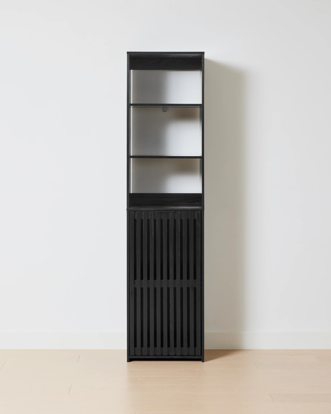 The Nate Tall Storage Unit With Shelves adds vertical storage and modern style, helping you keep your home neat while making the most of your floor space.