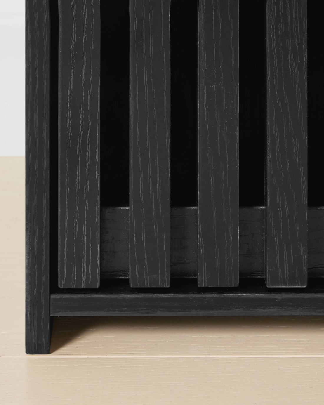 Modern Finish: Its black slatted panelling offers a sleek, contemporary look that blends easily with most interiors.