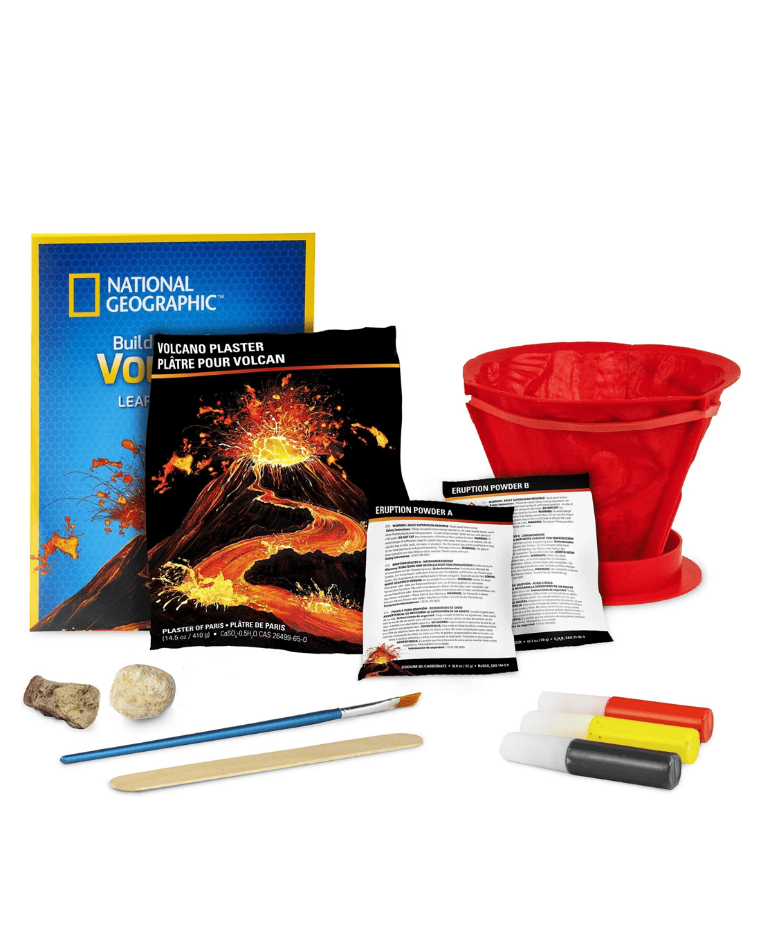 - Includes 1 x eruption powder, 1 x volcano plaster, 6 x paints, custom tools, 1 x National Geographic learning guide and instructions