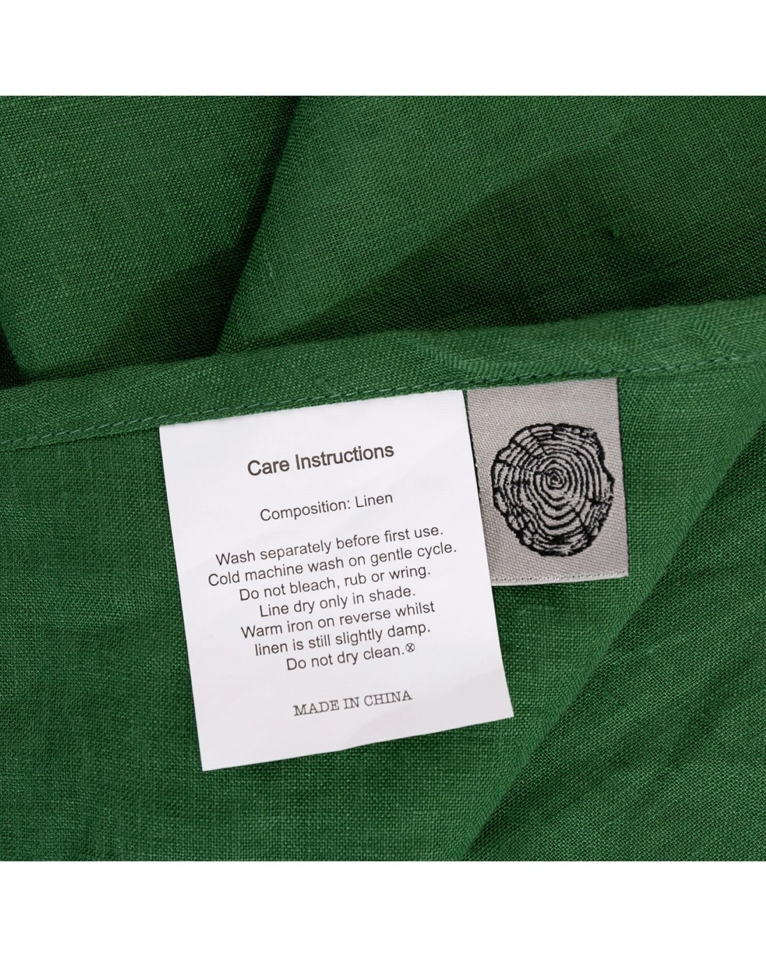 Wash separately before first use. Cold machine wash on gentle cycle. Do not bleach, rub or wring. Line dry only in shade. Warm iron on reverse while linen is still slightly damp. Do not dry clean.