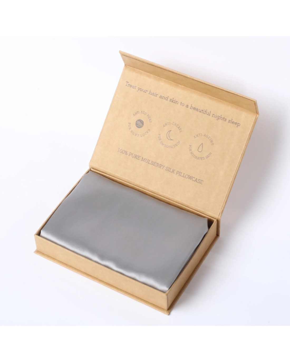 Natural Home Luxe Mulberry Silk Pillowcase 25 Momme King Pillowcase 48x90cm Twin Pack - Grey