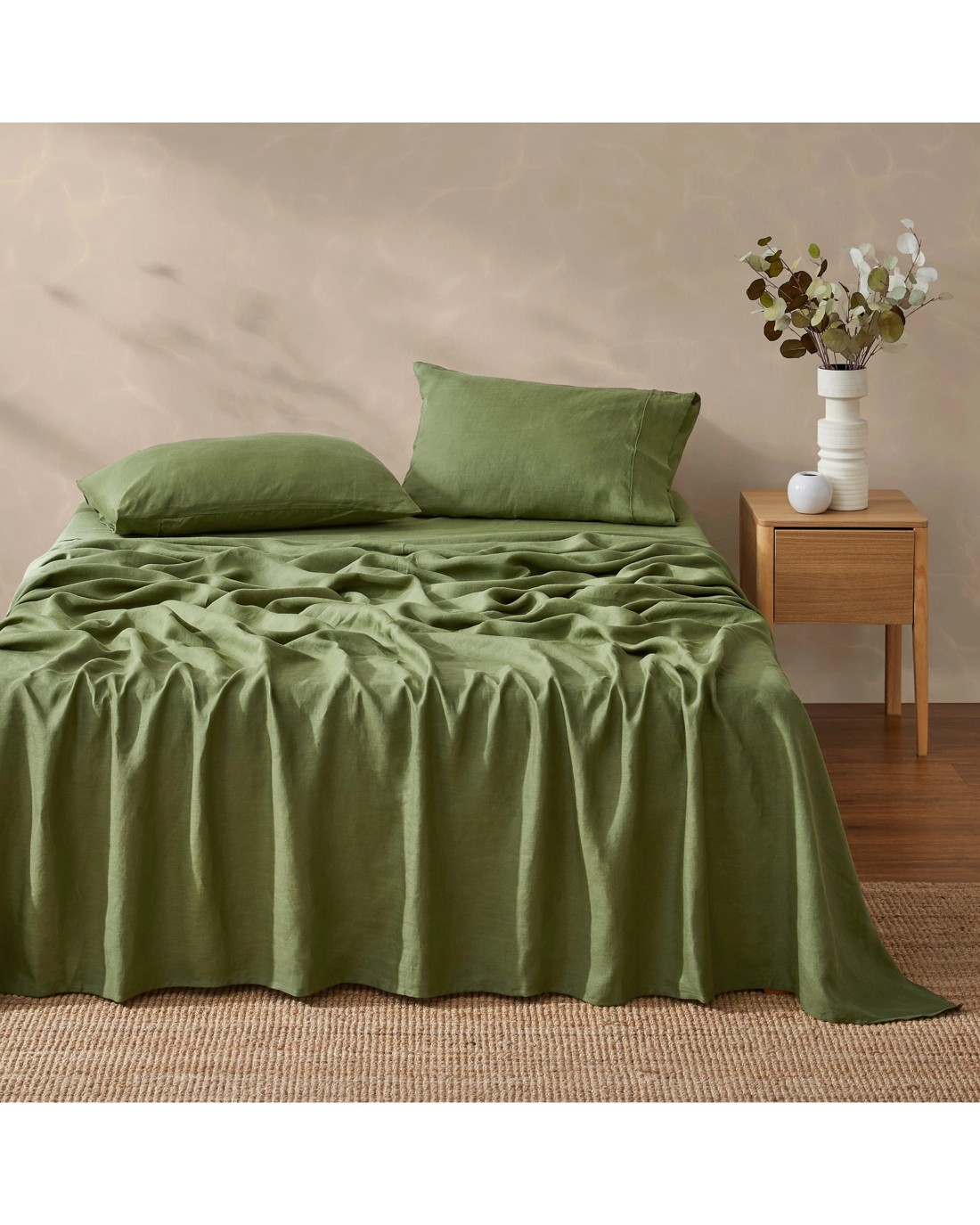 Natural Home Vintage Washed 100% Hemp Sheet Set - King Bed - Olive