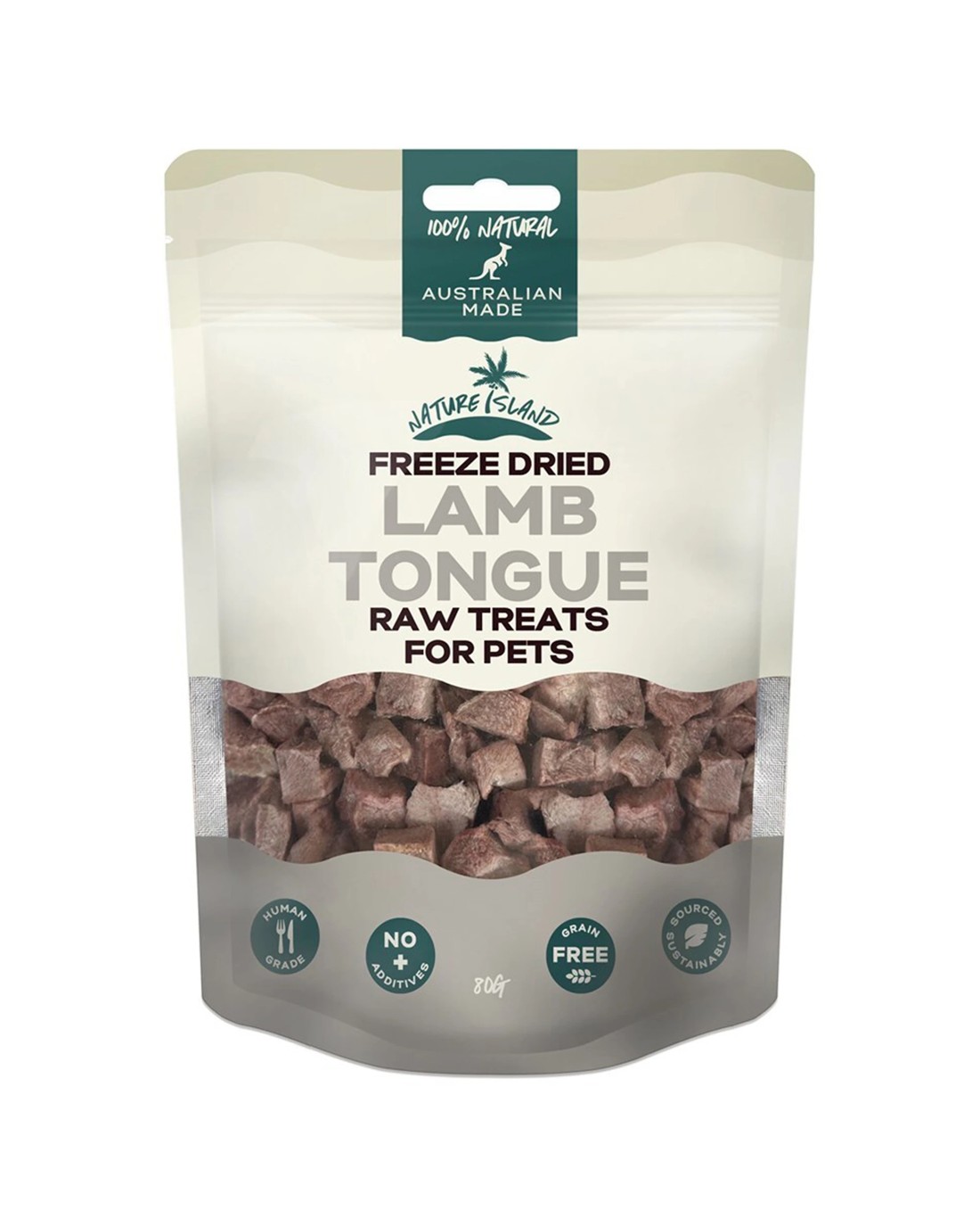 Nature Island Freeze Dried Lamb Tongue Dog Cat Raw Treat 80g Human Grade - Brown