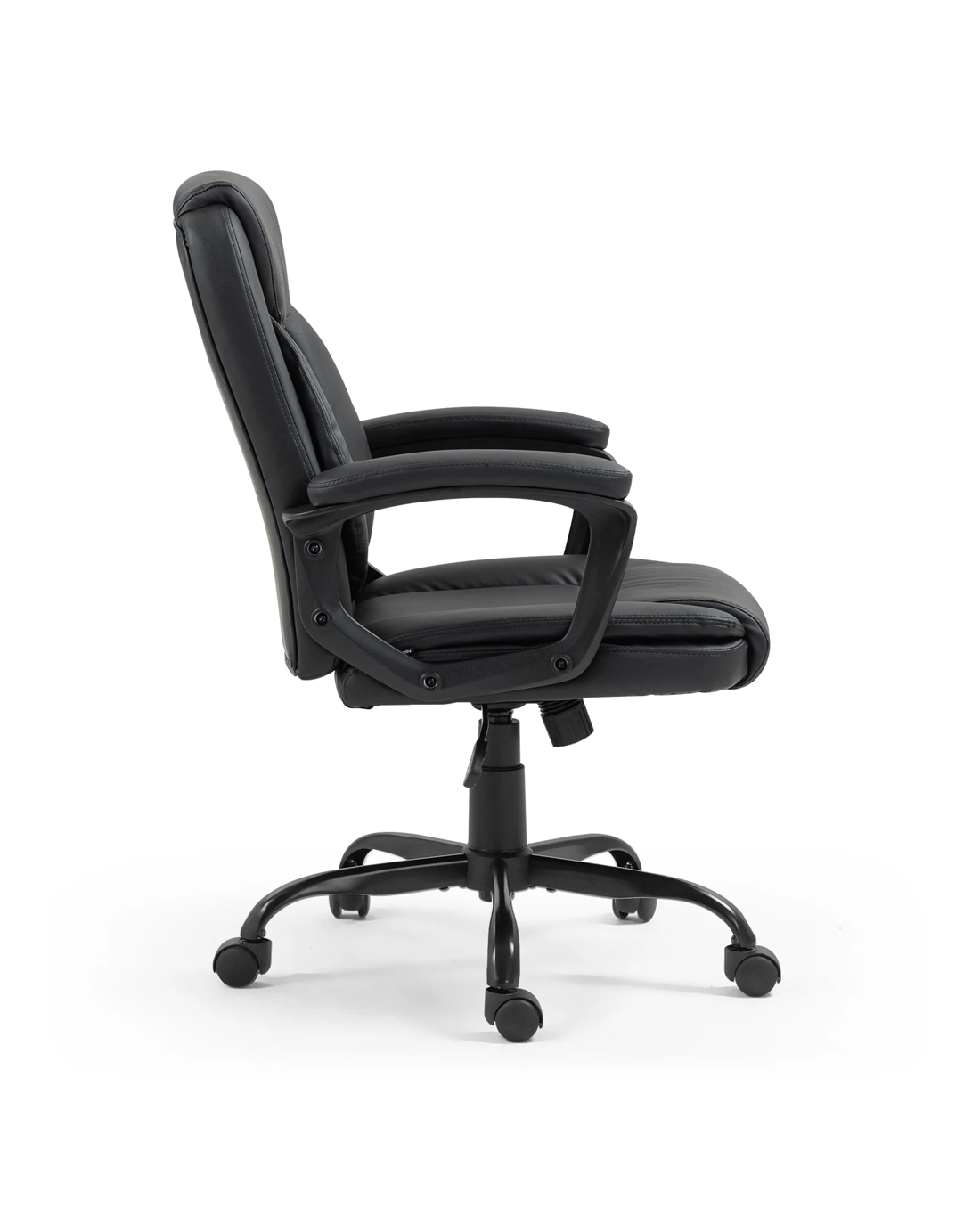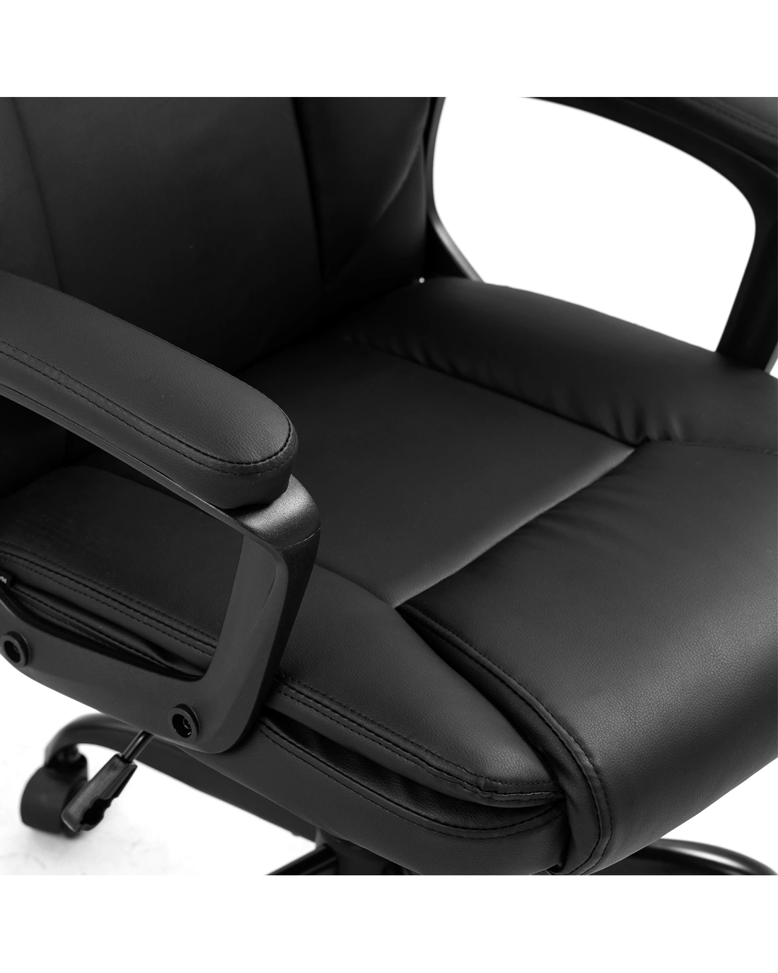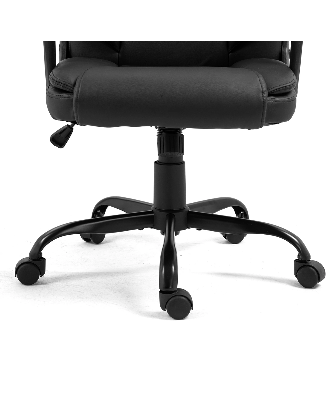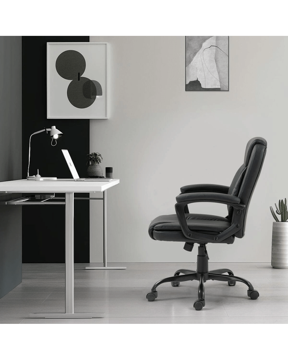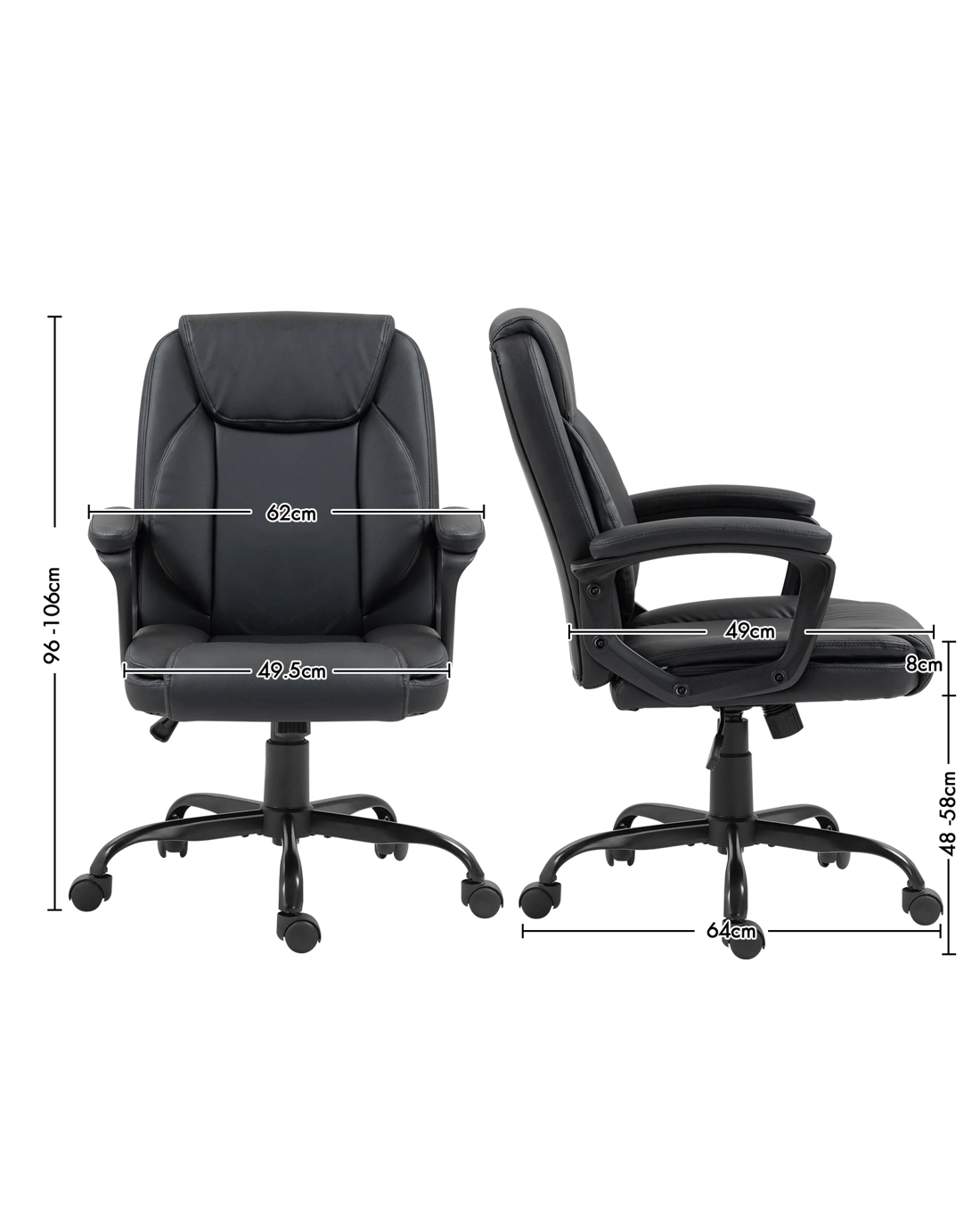 Optimise your productivity and well-being with this ergonomic office chair, whether you are sitting at the computer, drafting at your desk, or engaged in a study session. Constructed from reinforced materials, our computer chair boasts sturdiness and durability, accommodating up to 130kg. For those who value mobility, its premium universal wheels ensure smooth and easy manoeuvrability across any office terrain. Also, the 360-degree swivel of the executive chair affords you the flexibility to engage effortlessly with your workspace. Along with wide PP armrests, our comfortable office chair supports a wide range of arm positions and reduces the likelihood of tension buildup. Moreover, the smart tilt mechanism and the 100mm chrome gas lift facilitate precise height adjustment, ensuring the chair meets the ergonomic needs of any user while fitting perfectly into dimensions of 62x64x96-106cm.