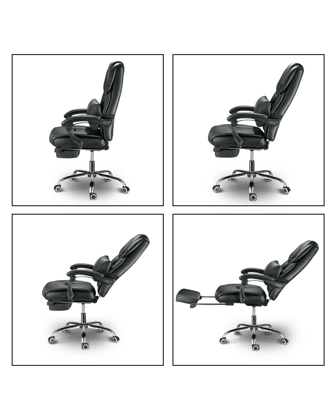 NEADER PU Leather 8-Point Massage Executive Office Chair w/ Lumbar Support Retractable Footrest
