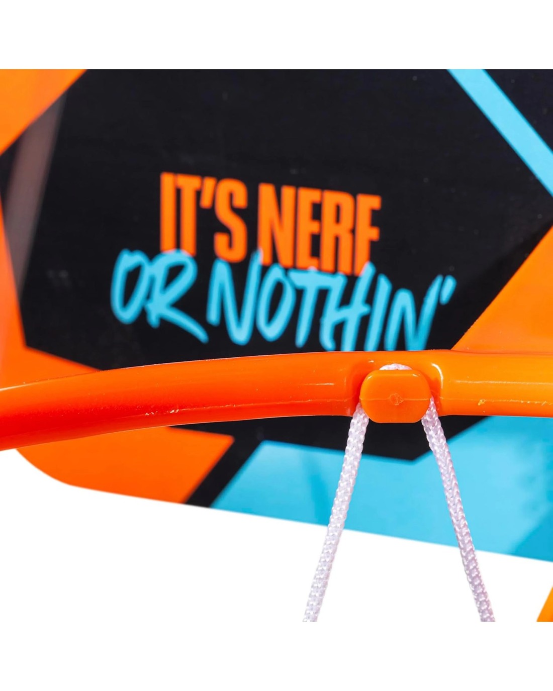 Bring all the fun of basketball indoors with the NERFOOP Slam Mini Over the Door Basketball Hoop Set! This all-in-one indoor mini basketball hoop set has everything kids need to get the game started right in their very own bedroom. This toy basketball set comes with (1) over the door kids basketball hoop and (1) mini NERF foam basketball so kids can play right out of the box. Simply hang the mini hoop over any standardized door and you're ready to play in seconds. This classic hoop has been upgraded with a spring loaded rim and plastic backboard for a more premium feel. Plus the soft foam 3.5" inch mini basketball is fun indoors so kids can play worry free. So if your kid is looking to bringing some basketball excitement to their room, grab them the NERFOOP Slam Mini Over the Door Basketball Hoop Set and start the game today! Ages: 3+