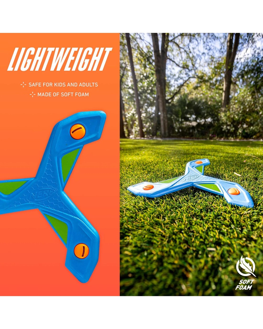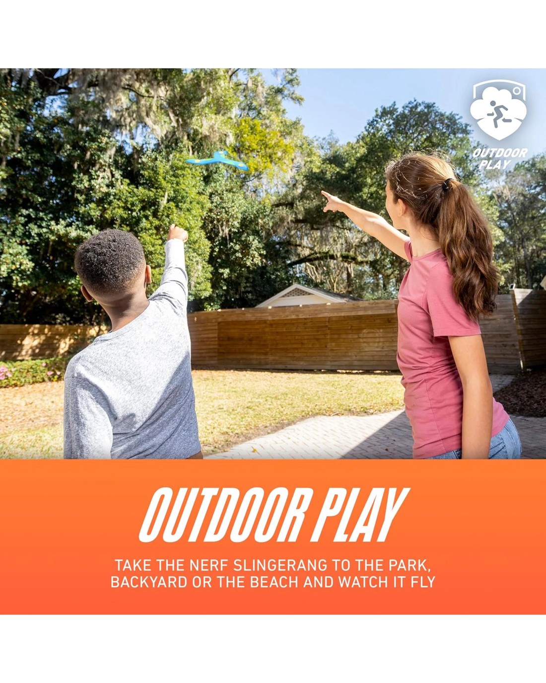 Experience endless outdoor fun with the NERF Slingerang Kids Soft Toy Boomerang! Designed for boys and girls, this boomerang offers the ultimate catch-and-return excitement. Crafted from lightweight and soft NERF foam, it's ideal for safe and kid-friendly play in the backyard, beach, or park. The user-friendly 3-handle design ensures easy gripping, making it a breeze for kids to catch and throw effortlessly. Whether playing solo or with friends, the NERF Slingerang guarantees active outdoor entertainment. Its compact design allows for convenient portability, ensuring kids can take it anywhere for on-the-go adventures. Ages: 3+