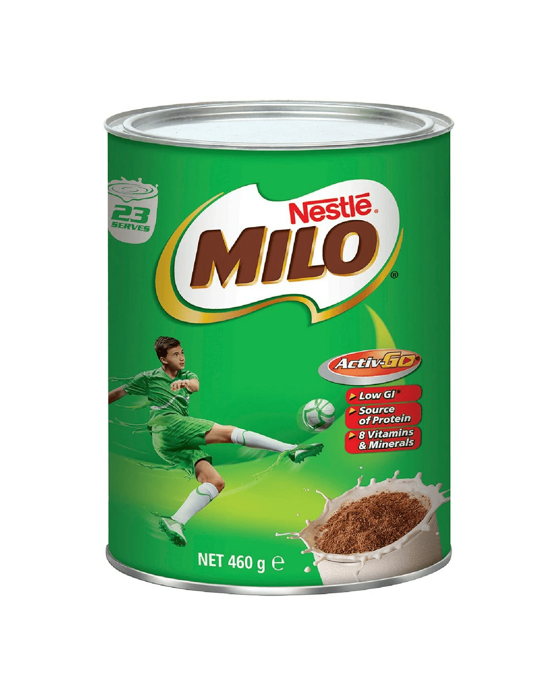 • This tin holds 460 g of MILO powder.