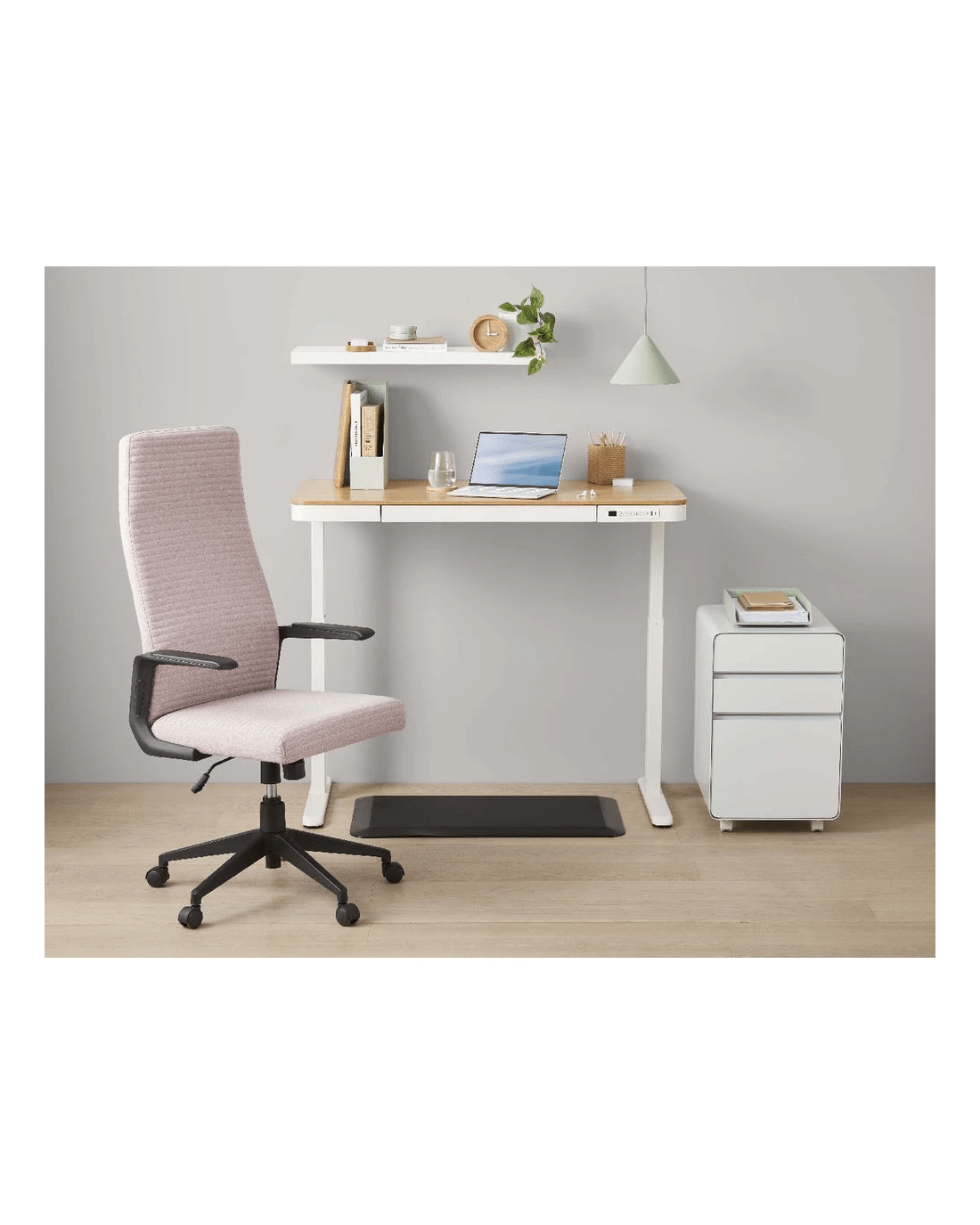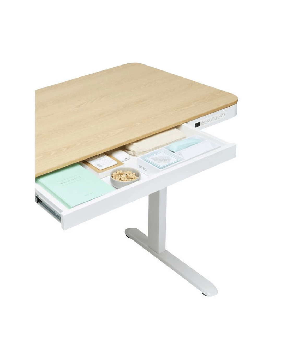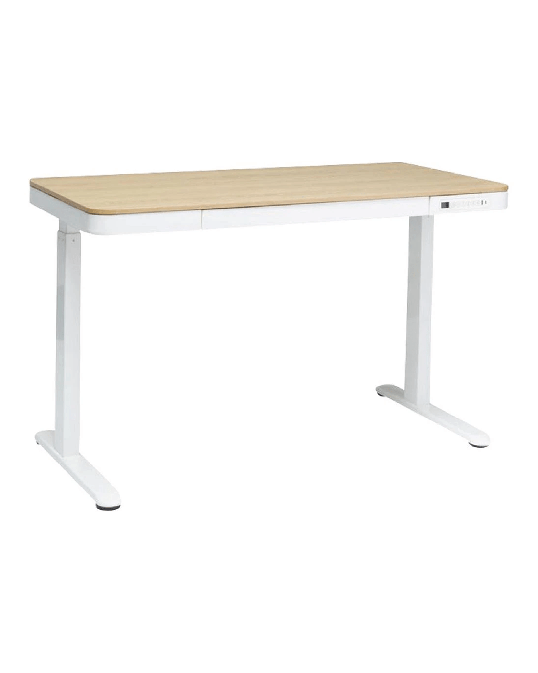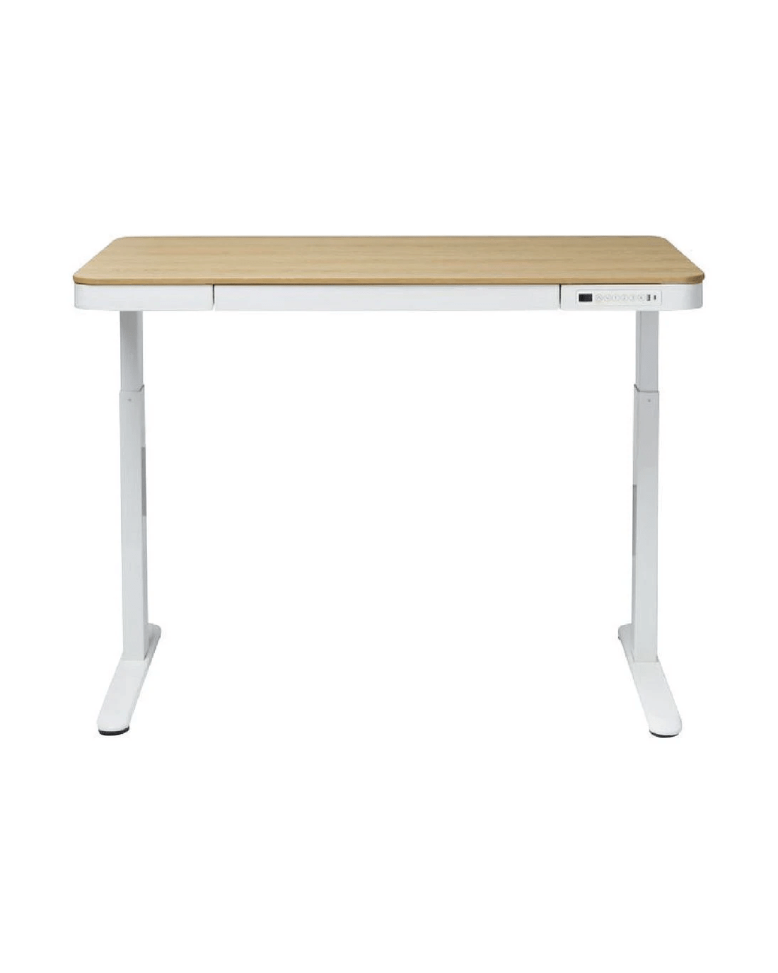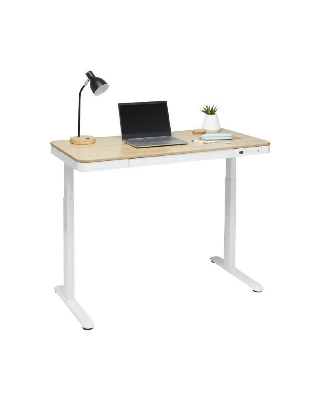 Sold by OfficeworksNewhaven Electric Sit Stand Desk with Drawer 1200mm White/Oak Desks, Tables and Workstations