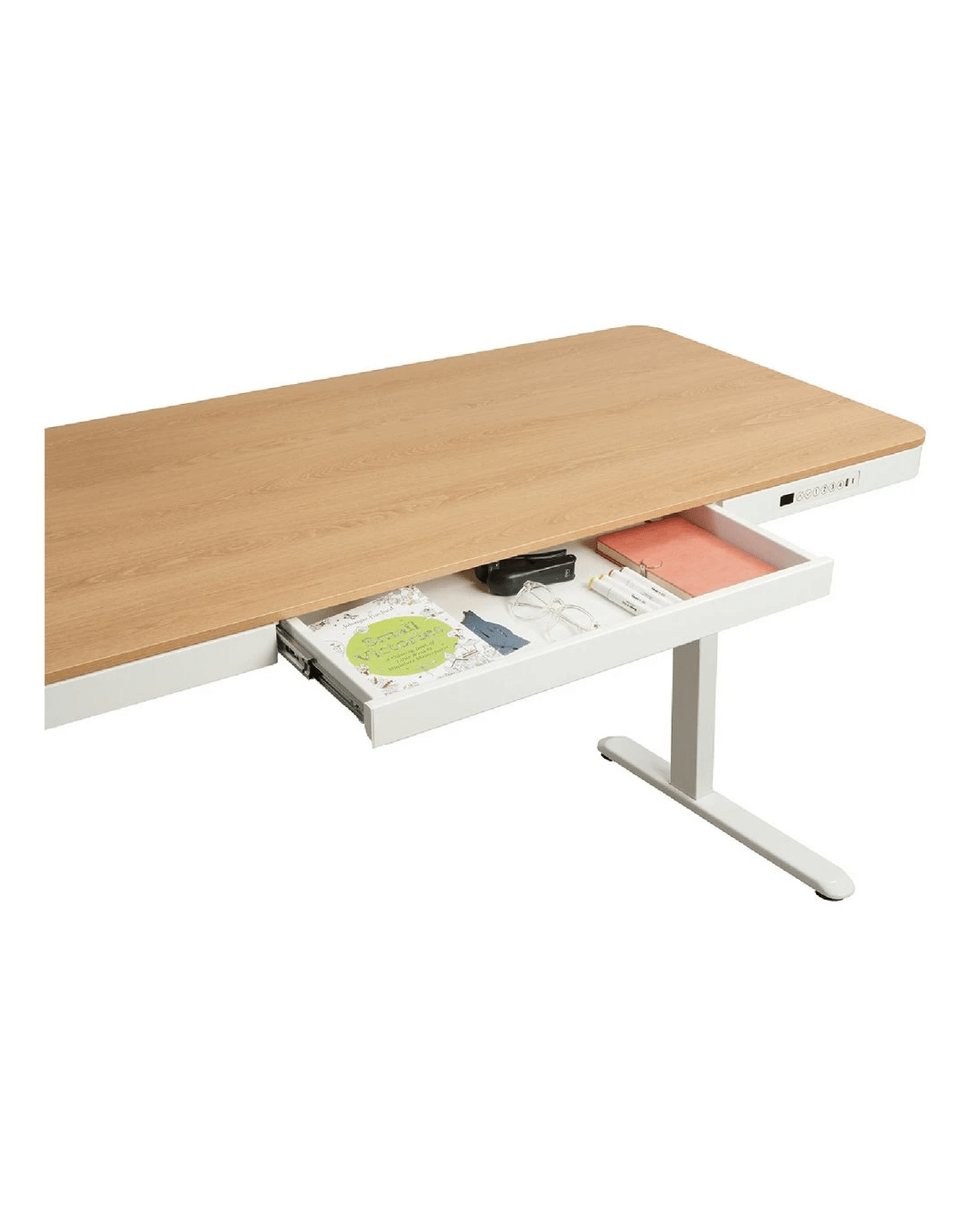 • The easy glide drawer can hold up to 5 kg of stationery and other small items.