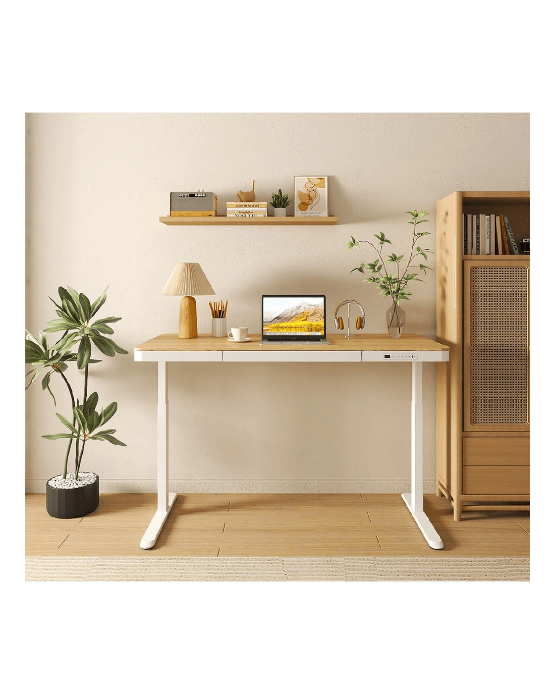 Newhaven Electric Sit Stand Desk with Drawer 1500mm White/Oak Desks, Tables and Workstations