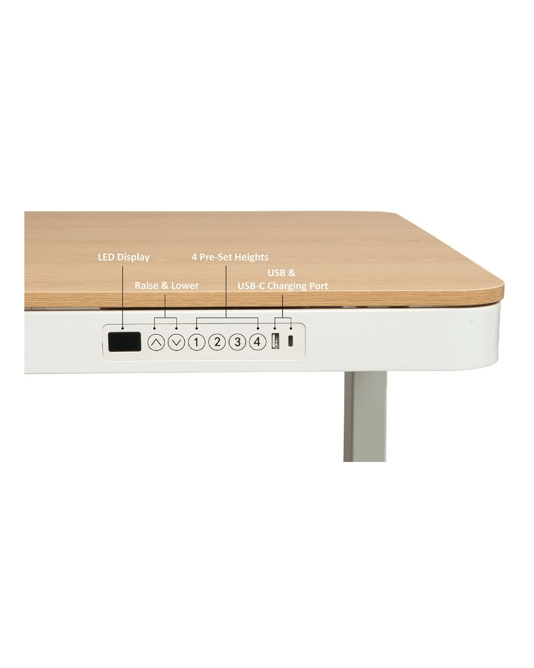 • The memory function allows users to save 4 pre-set desk heights for added convenience.