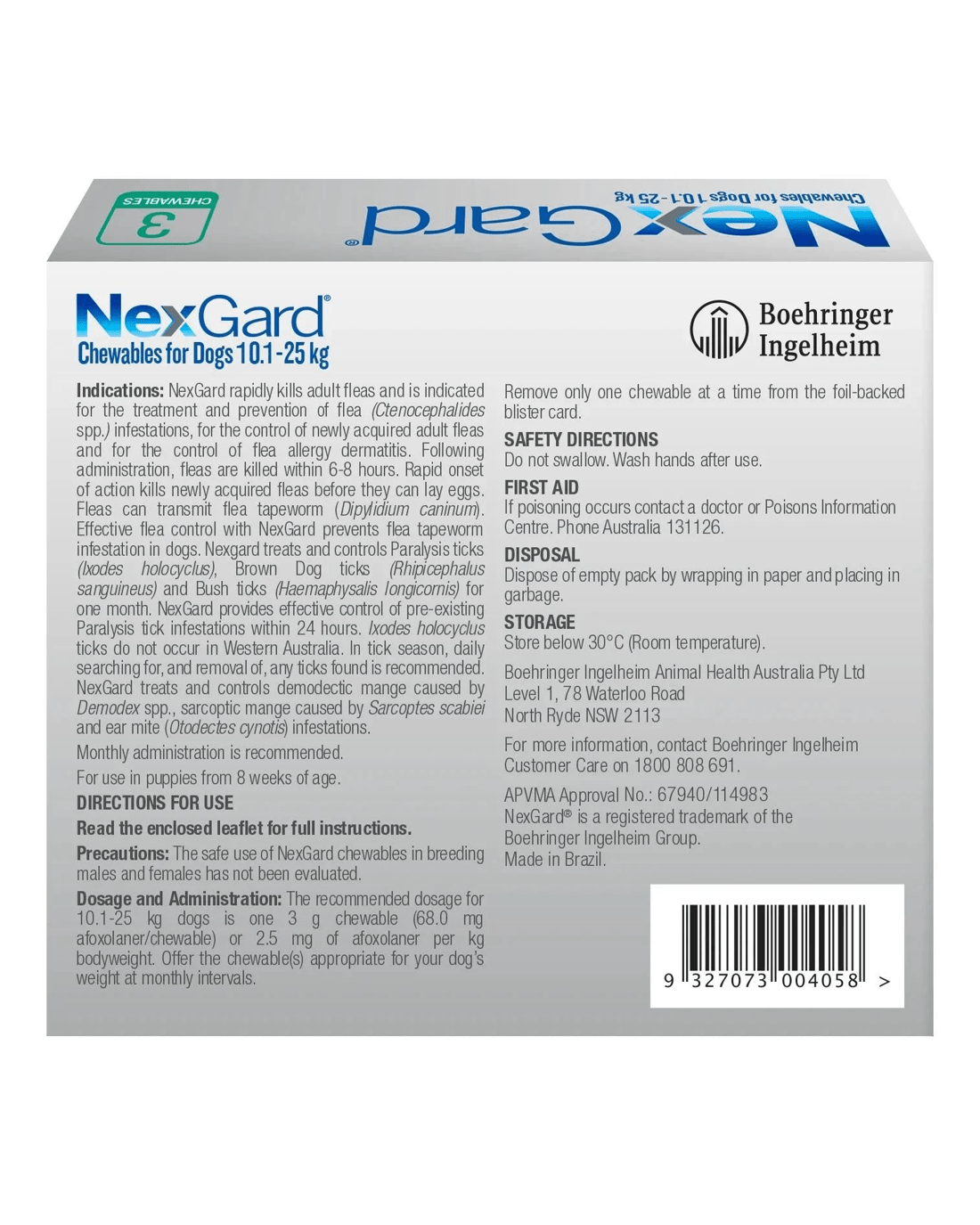 Sold by Sello ProductsNexgard For Dogs Green Large 10.1-25kg - 3 Months Supply