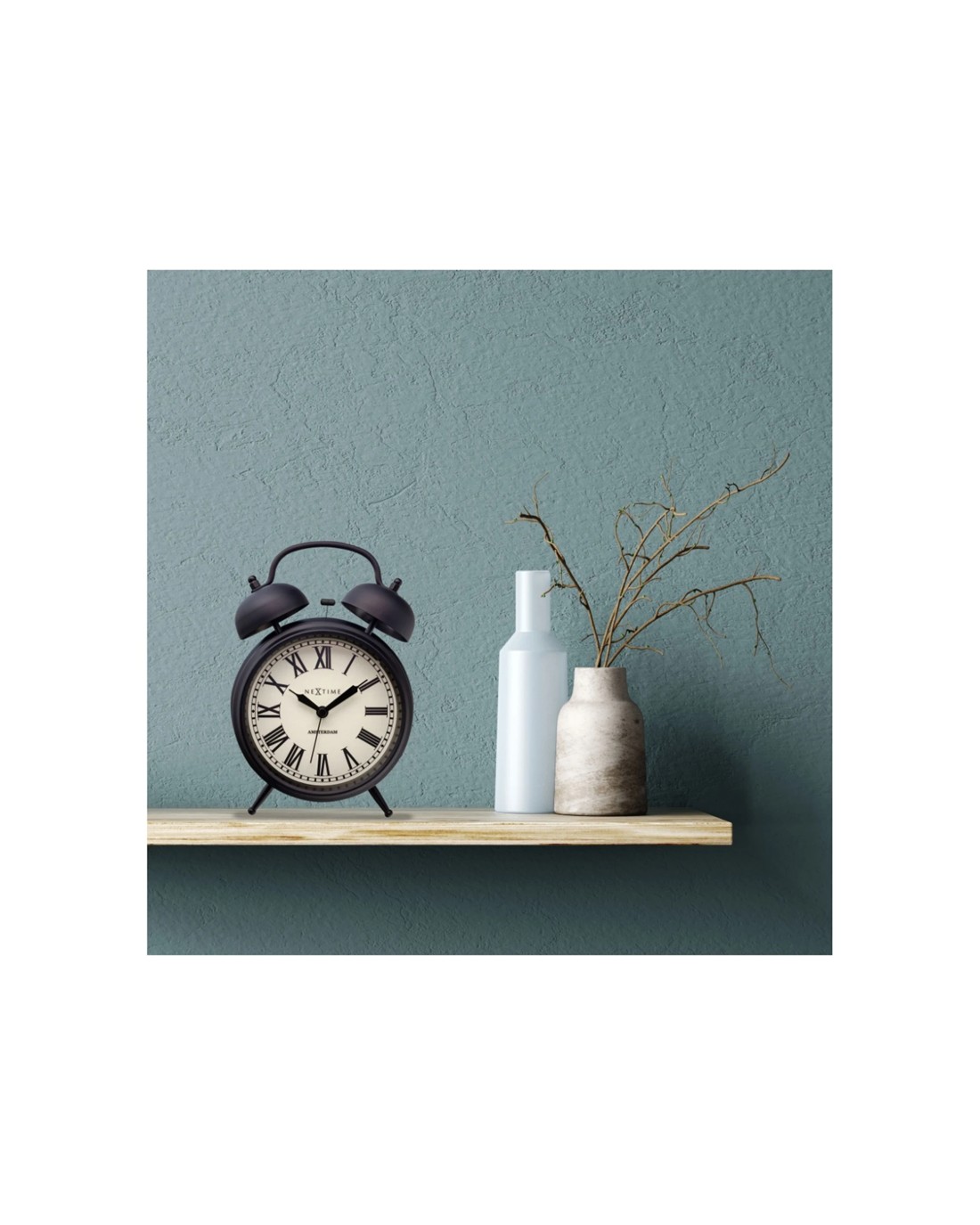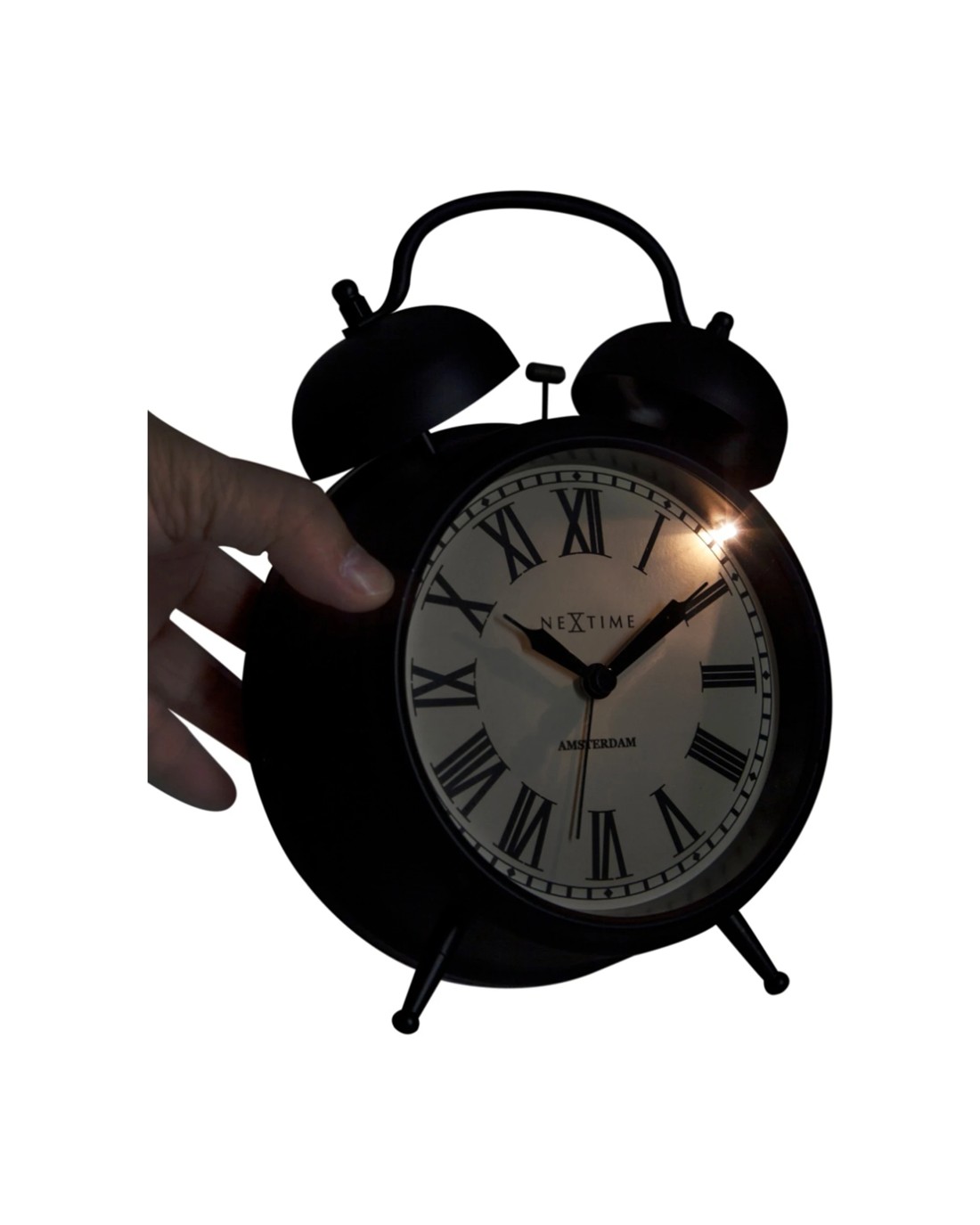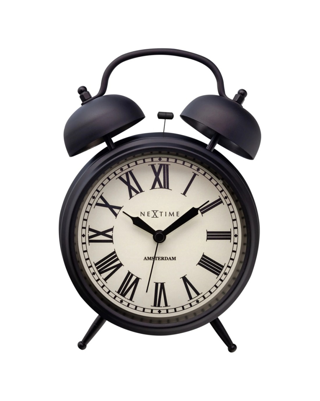 NEXTIME Amsterdam Alarm Clock Double Bell Silent Sweep Movement Night Light - Black