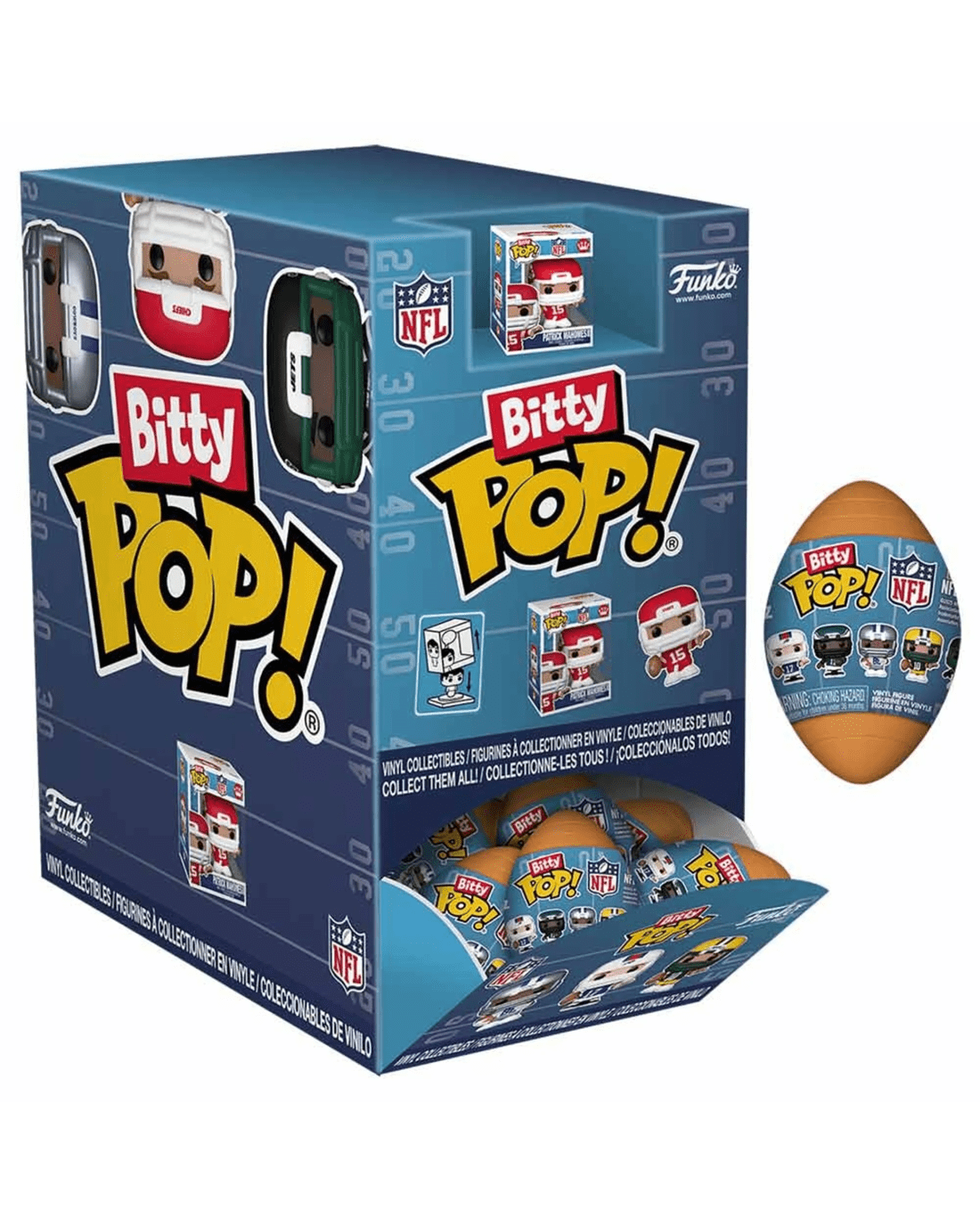 Your favourite NFL Bitty Pop!s are now collectible in these cute football-shaped blind eggs! There are 12 characters to collect!