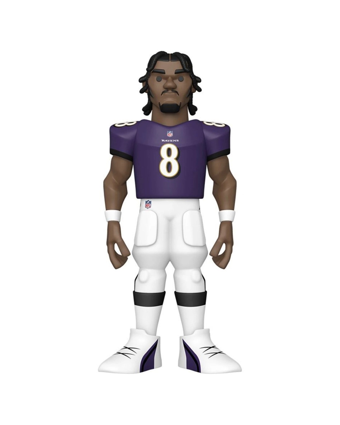 The NFL Lamar Jackson Vinyl Action Figure is designed for NFL fans and collectors to showcase their favourite player in a dynamic, collectible form. Crafted from premium vinyl, this 12-inch tall figure offers an authentic representation of Lamar Jackson dressed in his Baltimore Ravens home game uniform, making it an ideal addition to any sports memorabilia collection.