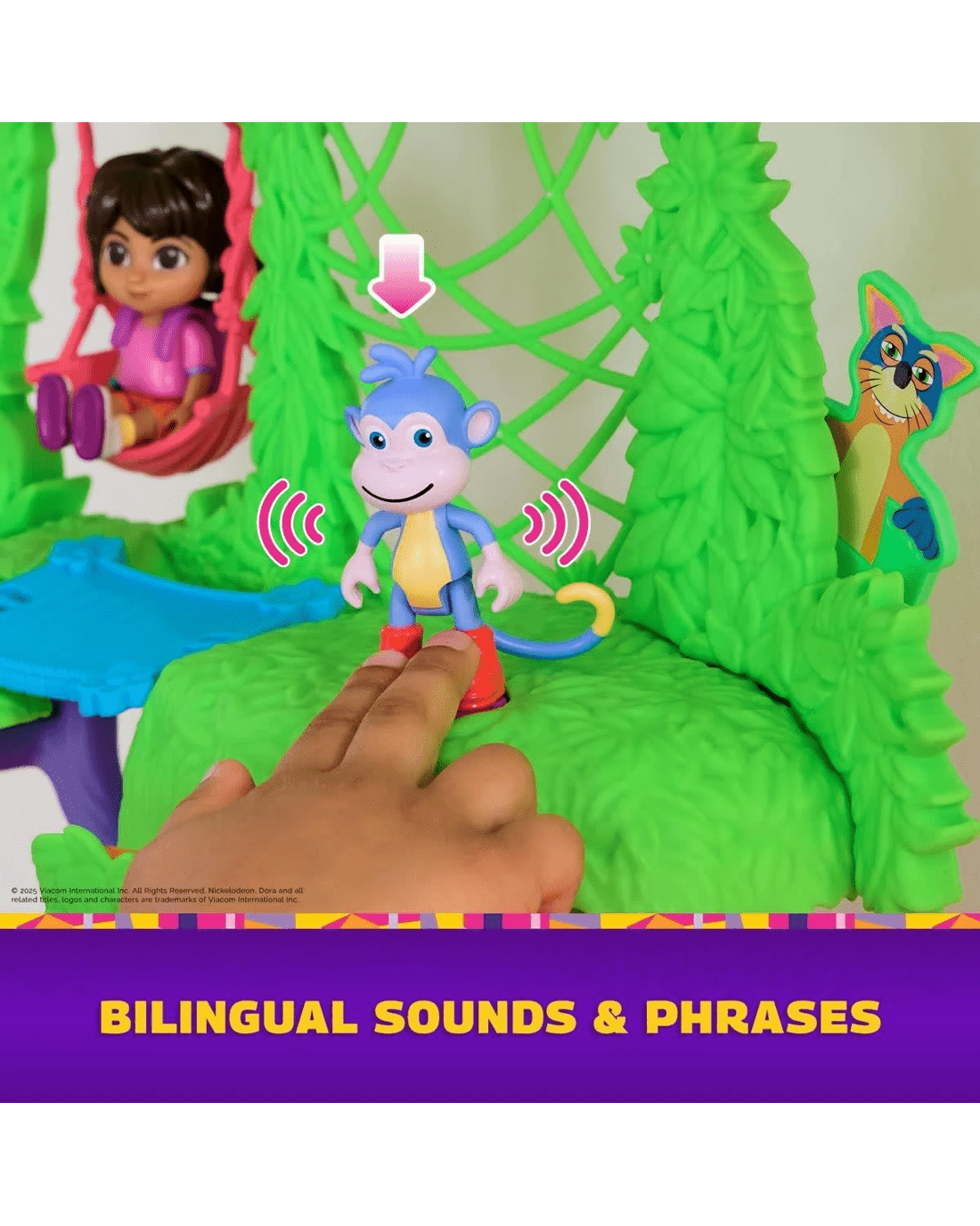 - Outdoor adventures: Features interactive elements like a swinging vine, treetop playground, wobbly bridge, see-saw monkey bars, magic slide, dancing flower and a pop-out Swiper for surprise play