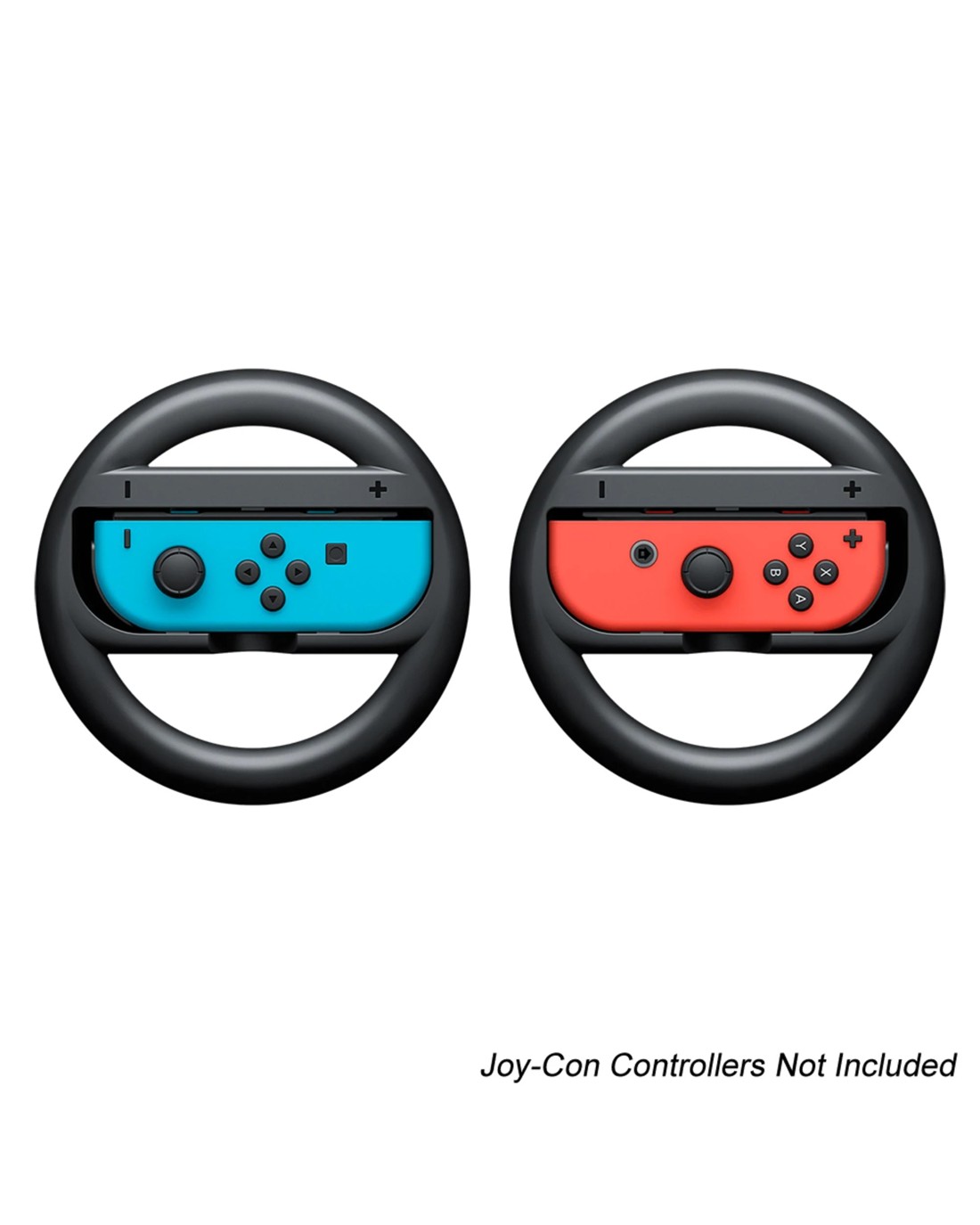 Joy-Con Wheel (Set of 2) Insert a Joy-Con into this accessory to feel like you're behind the wheel in your favorite racing game. For use with Nintendo Switch software that is "Joy-Con Wheel Compatible". Match the + or - button on the Joy-Con with the same symbol on the accessory, then push the controller in to attach it. Joy-Con controllers not included.