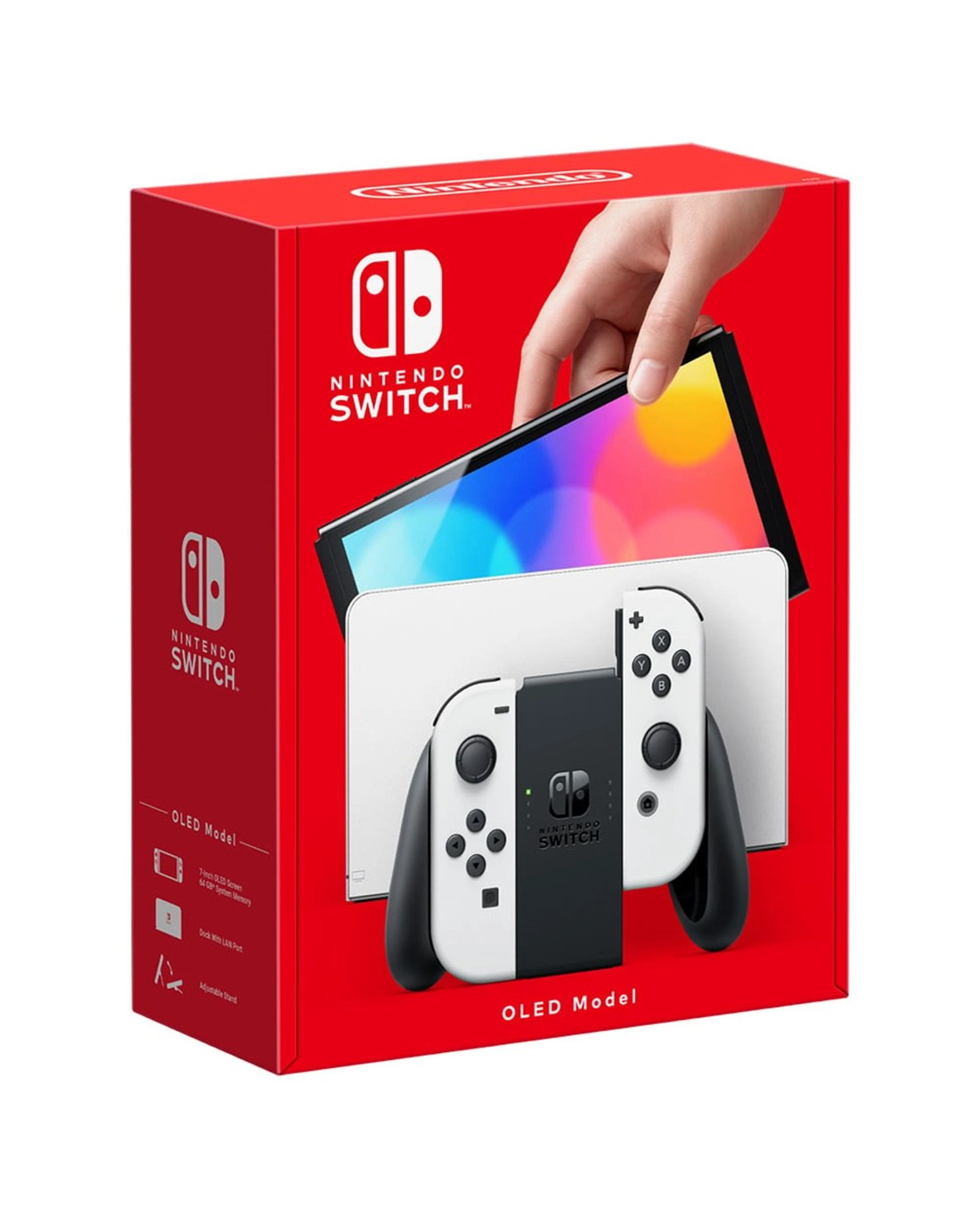 Meet the newest member of the Nintendo Switch family Play at home on the TV or on-the-go with a vibrant 7-inch OLED screen with the Nintendo Switch (OLED model). In addition to the screen with vivid colors and sharp contrast, the Nintendo Switch (OLED model) includes a wide adjustable stand, a dock with a wired LAN port for TV play, 64 GB of internal storage, and enhanced audio. The new system features a vibrant 7-inch OLED screen, a wide adjustable stand, a dock with a wired LAN port, 64 GB of internal storage, and enhanced audio.