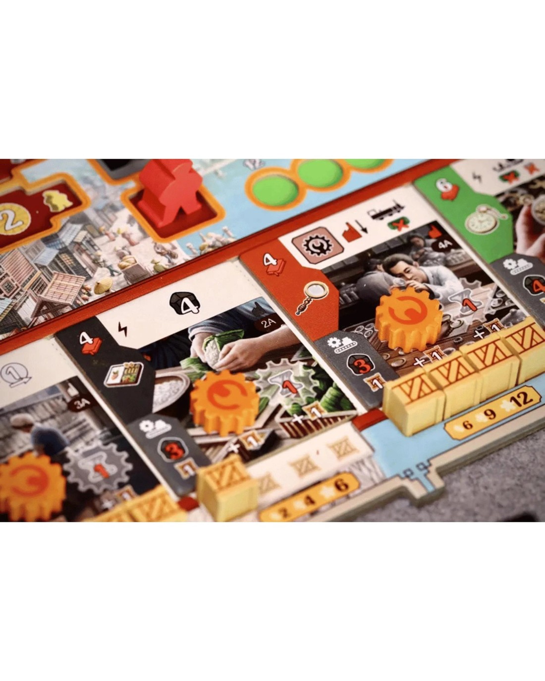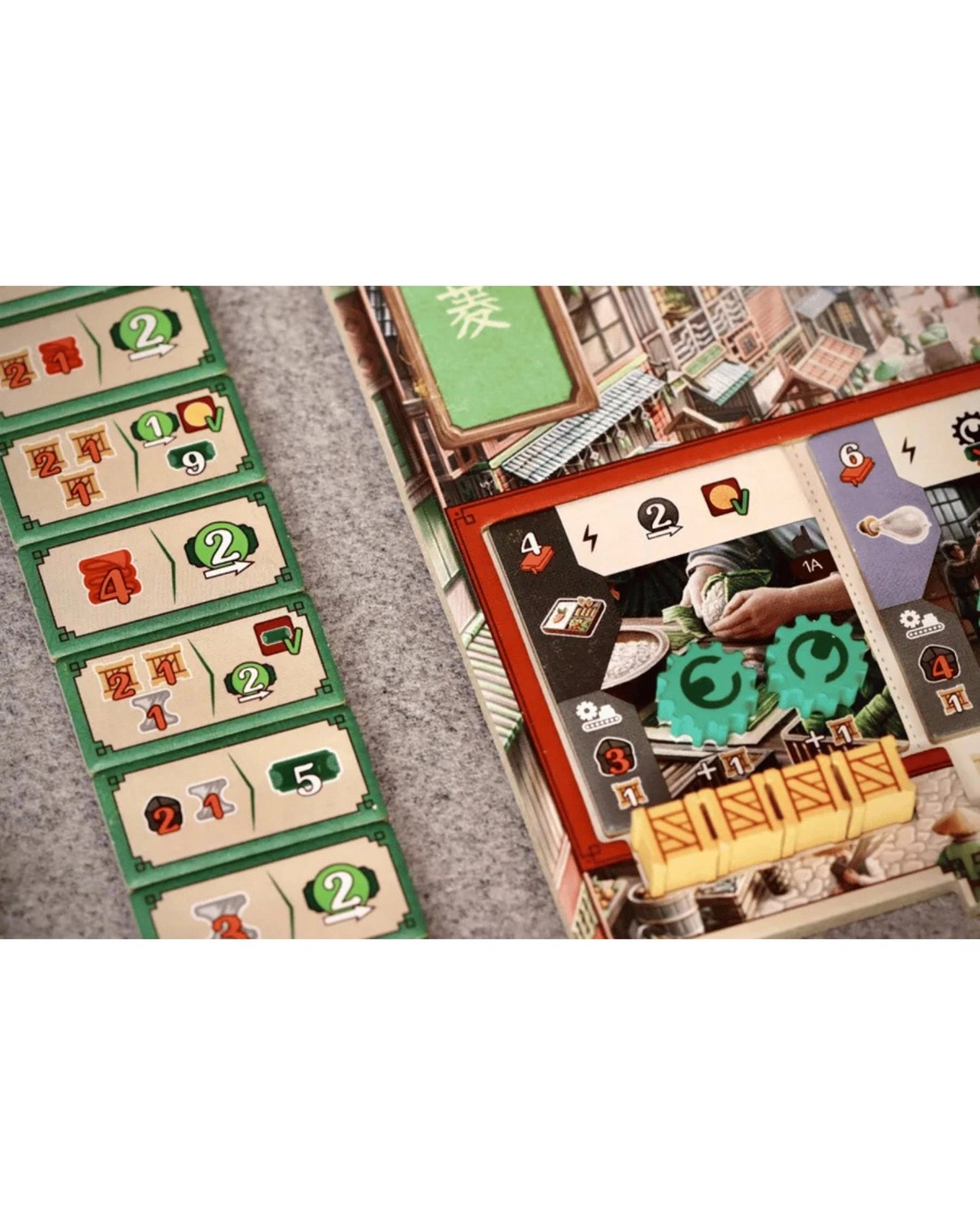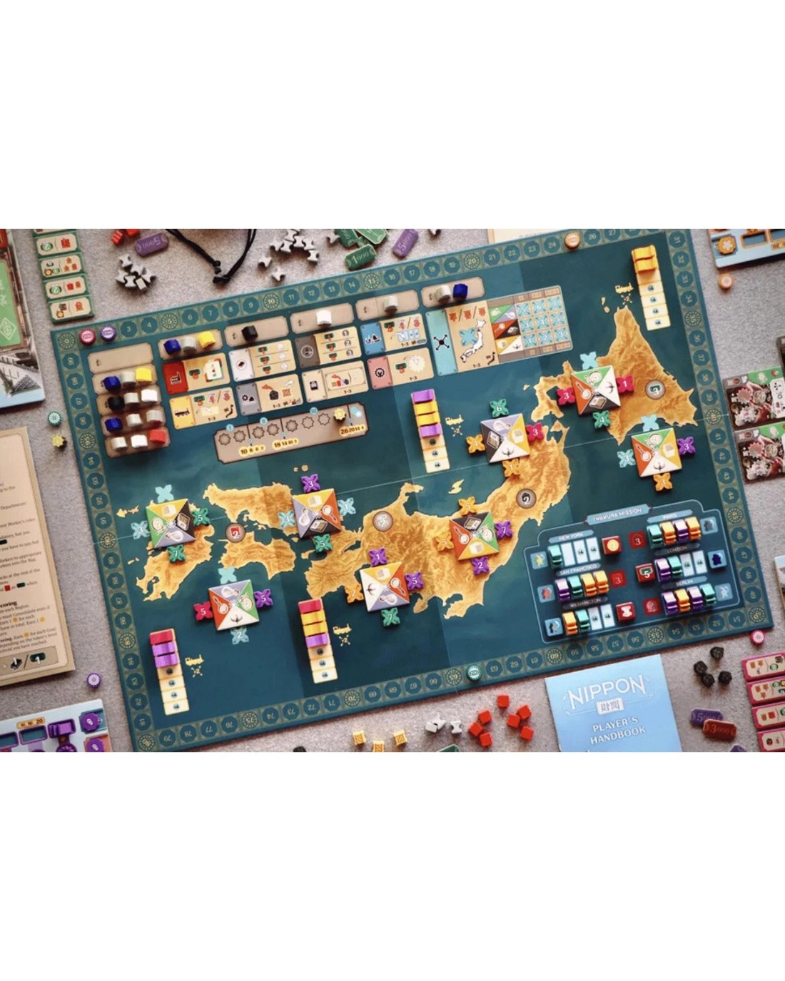 Nippon: Zaibatsu is a reimagined and updated 10th Anniversary edition of Nippon - a fast-paced area majority economic game about massive congolmerates of interconnected companies driving Japan's economy in the Industrial Revolution era. During the game, players invest in new industries, build factories and railroads, and produce goods to saturate local markets and fulfill contracts — all to grow their influence and power and to become rulers of the new modernized country. Players are free to choose their playstyle and winning strategy: They choose what they score victory points for, control the game's pace with income turns, and race each other to get the most beneficial factories, markets, and bonuses. All the core mechanisms of the original Nippon are present, but the components, art, and design are upgraded, and many gameplay features are reworked to get the game in line with modern trends. Nippon: Zaibatsu features new resource types, ships are heavily revised with new Iwakura mission rules, factories are much more variable, consolidation turns provide players with new rewards, and much more. Also, the game now has an automa-driven solo mode. Ages: 14 + | Players: 1 - 4 | Playtime: 60 - 120 min