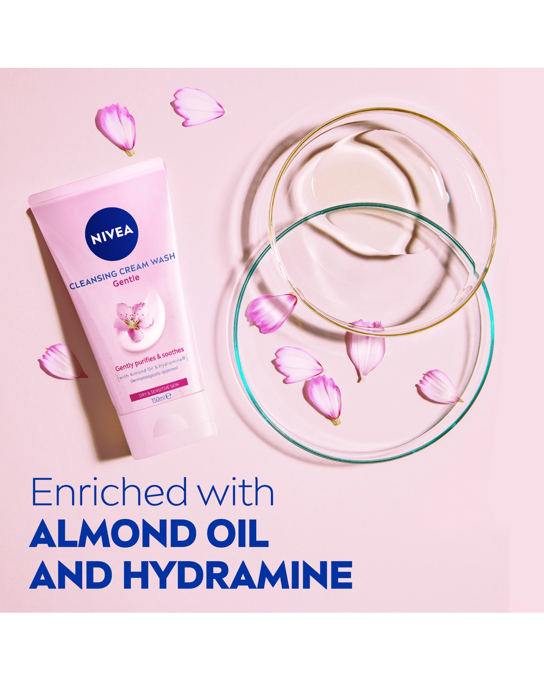 • This cleanser removes daily impurities whilst also soothing and moisturising the skin with its mild formula, enriched with Almond Oil and skin-identical moisturiser (Hydramine).