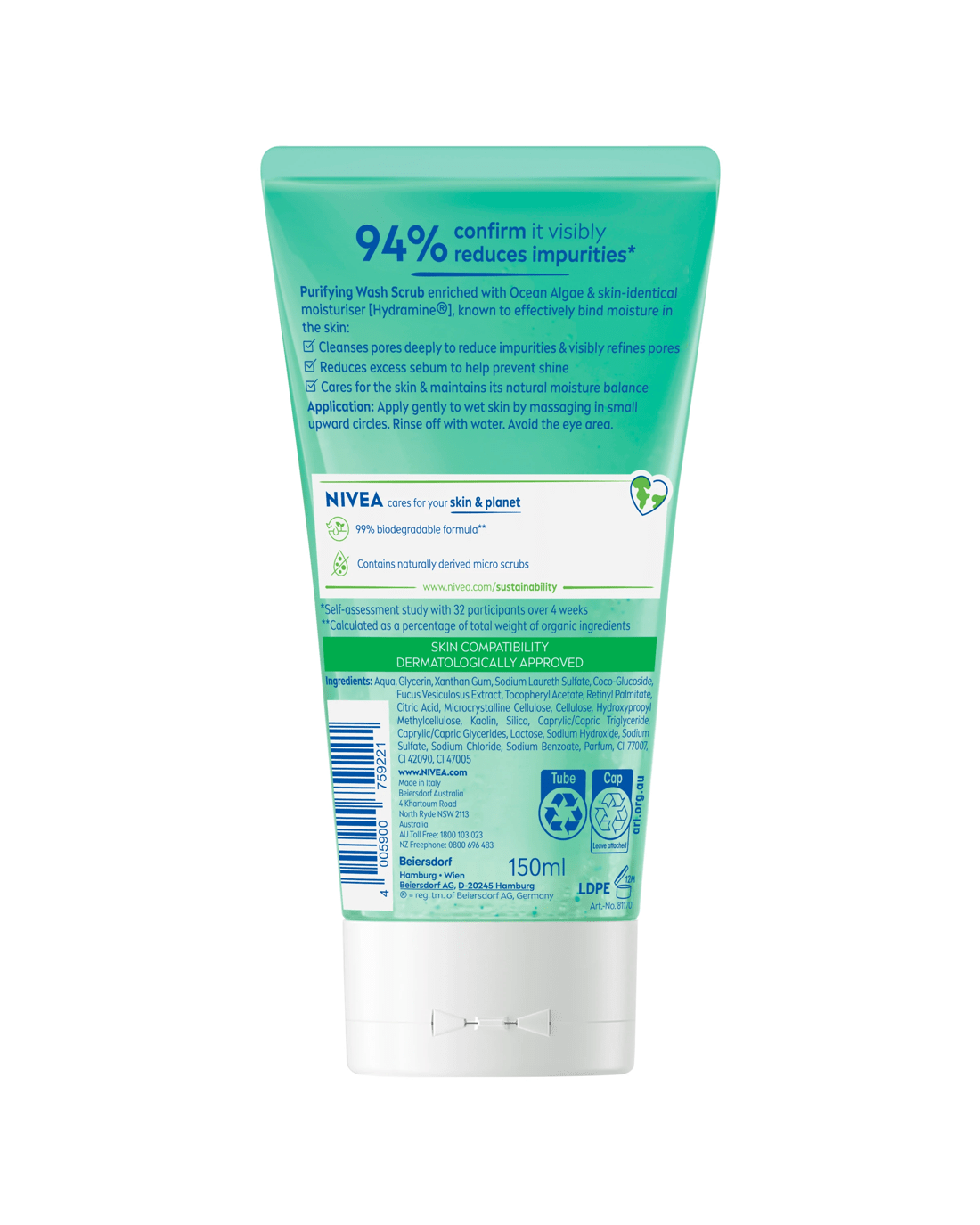 Sold by KmartNivea Purifying Wash Scrub 150ml - Ocean Algae and Hydramine
