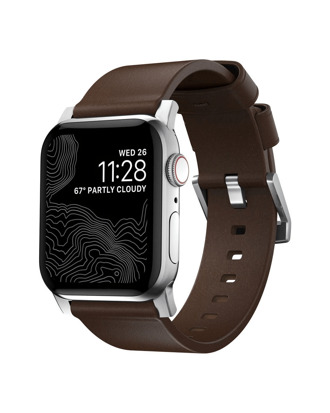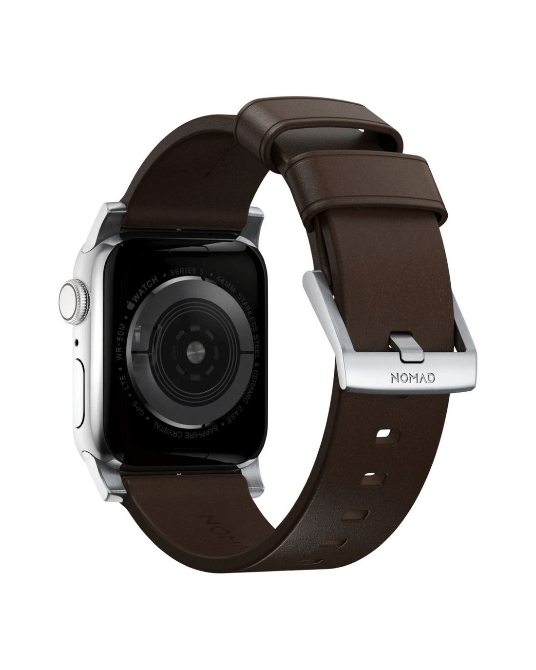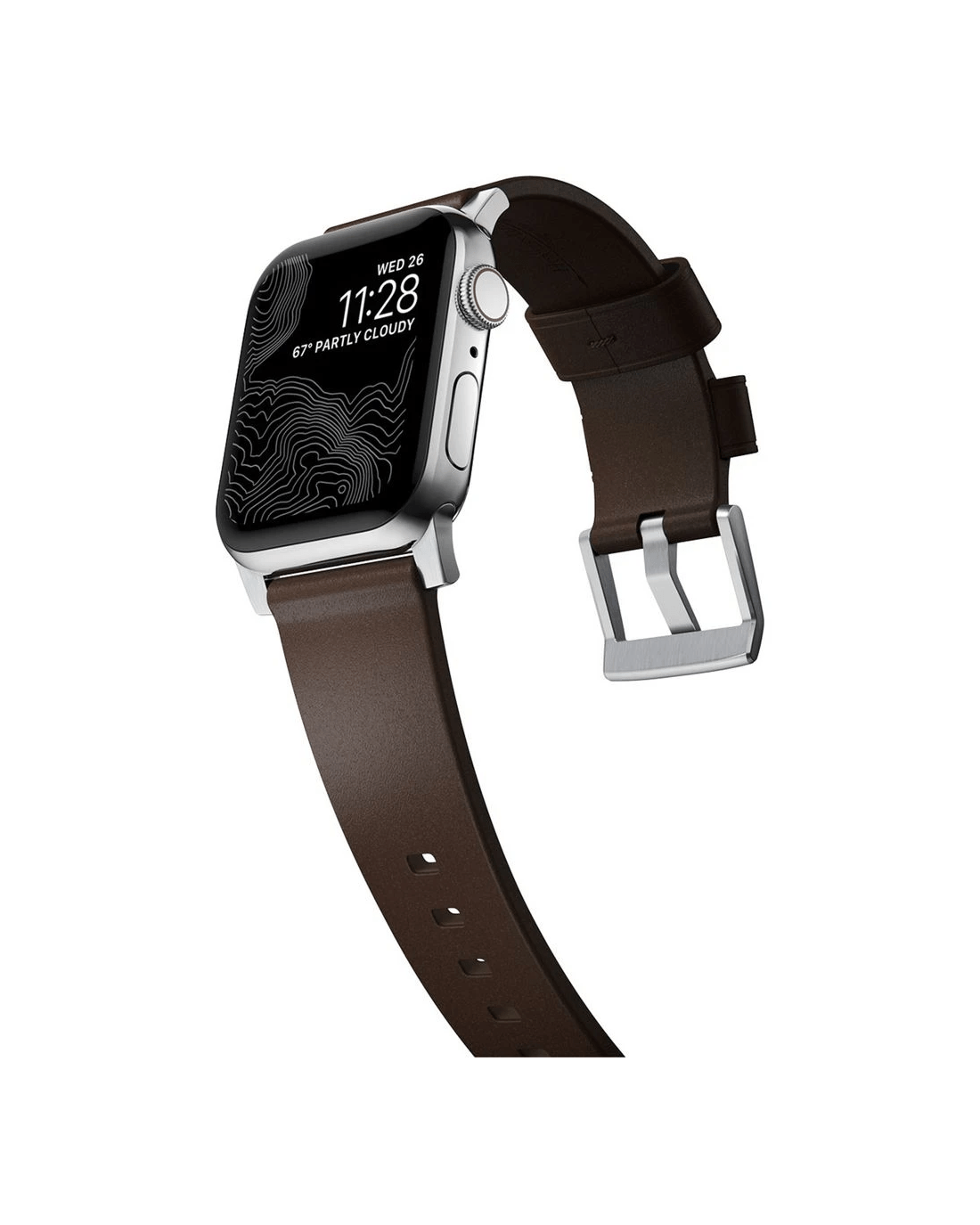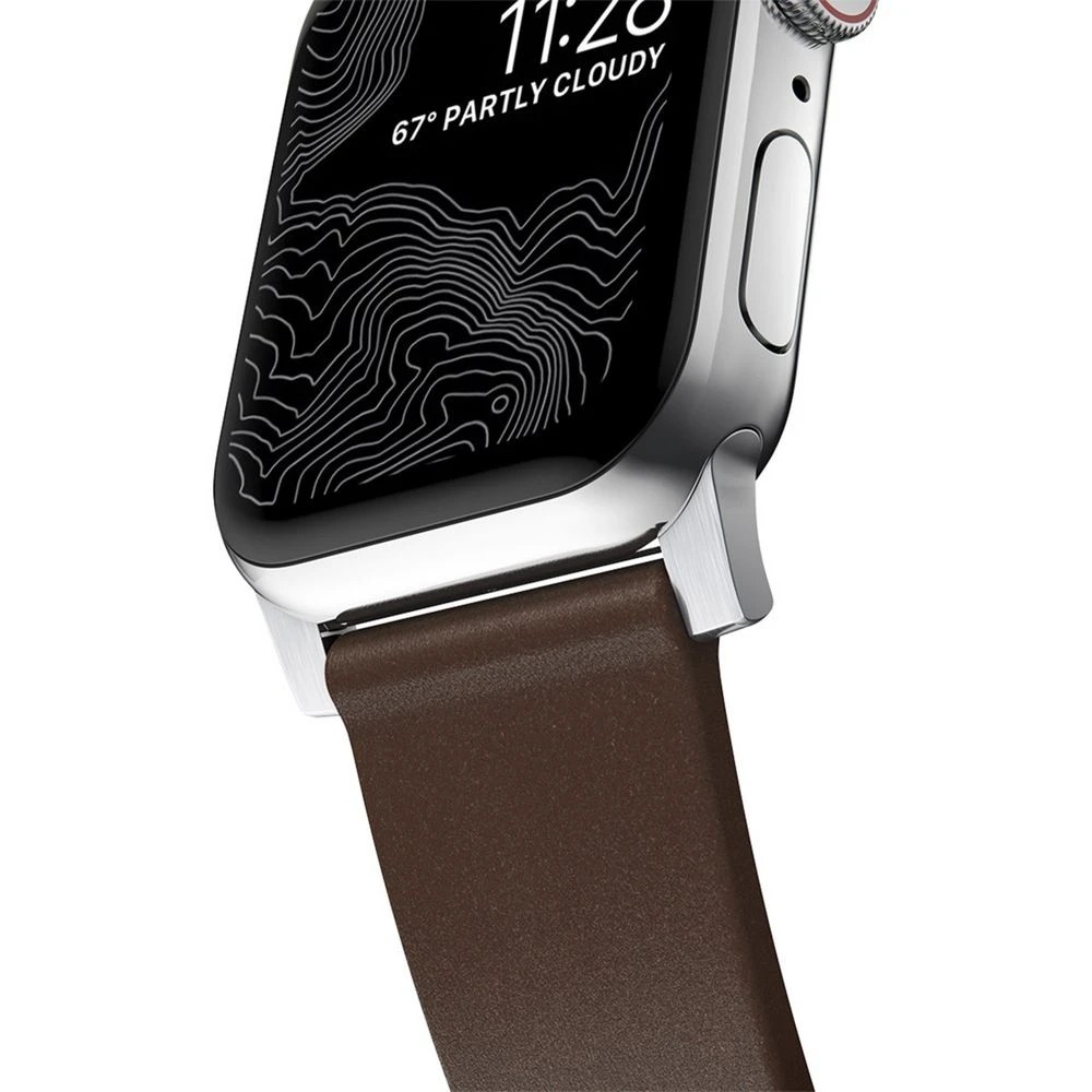 Nomad Apple Watch Band Leather 44-46mm Brown Silver