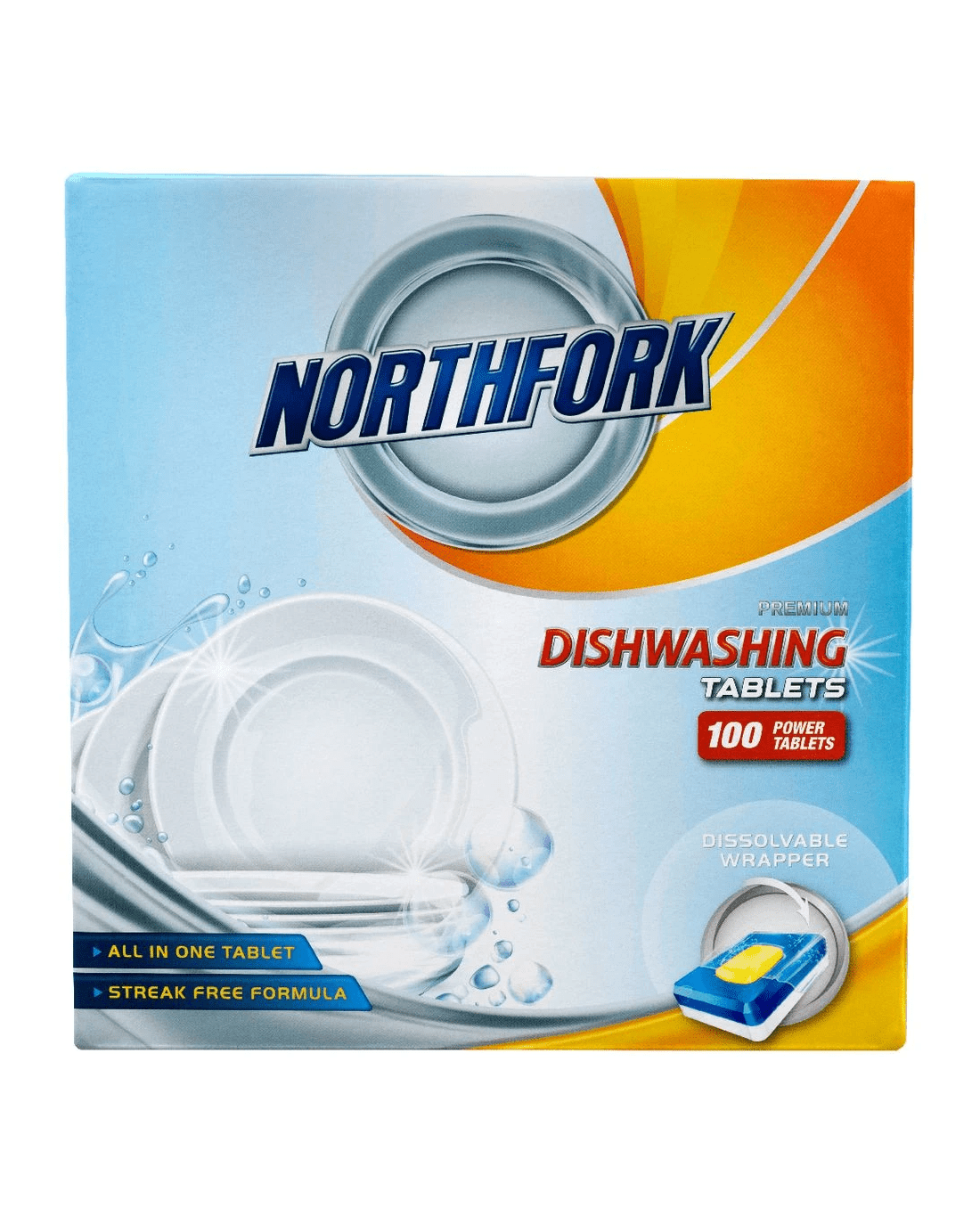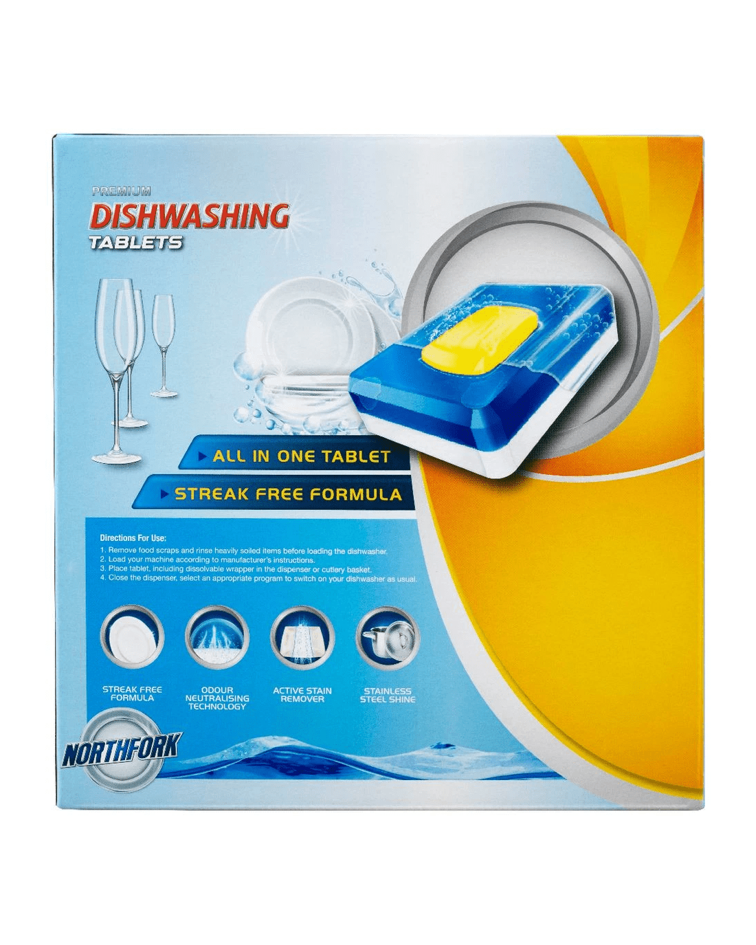 Northfork All In 1 Dishwashing Tablets combine an active stain remover and premium dishwashing ingredients to deliver clean, shiny and streak-free results. Each tablet comes individually wrapped in a dissolvable wrapper for cleaner, more hygienic use.