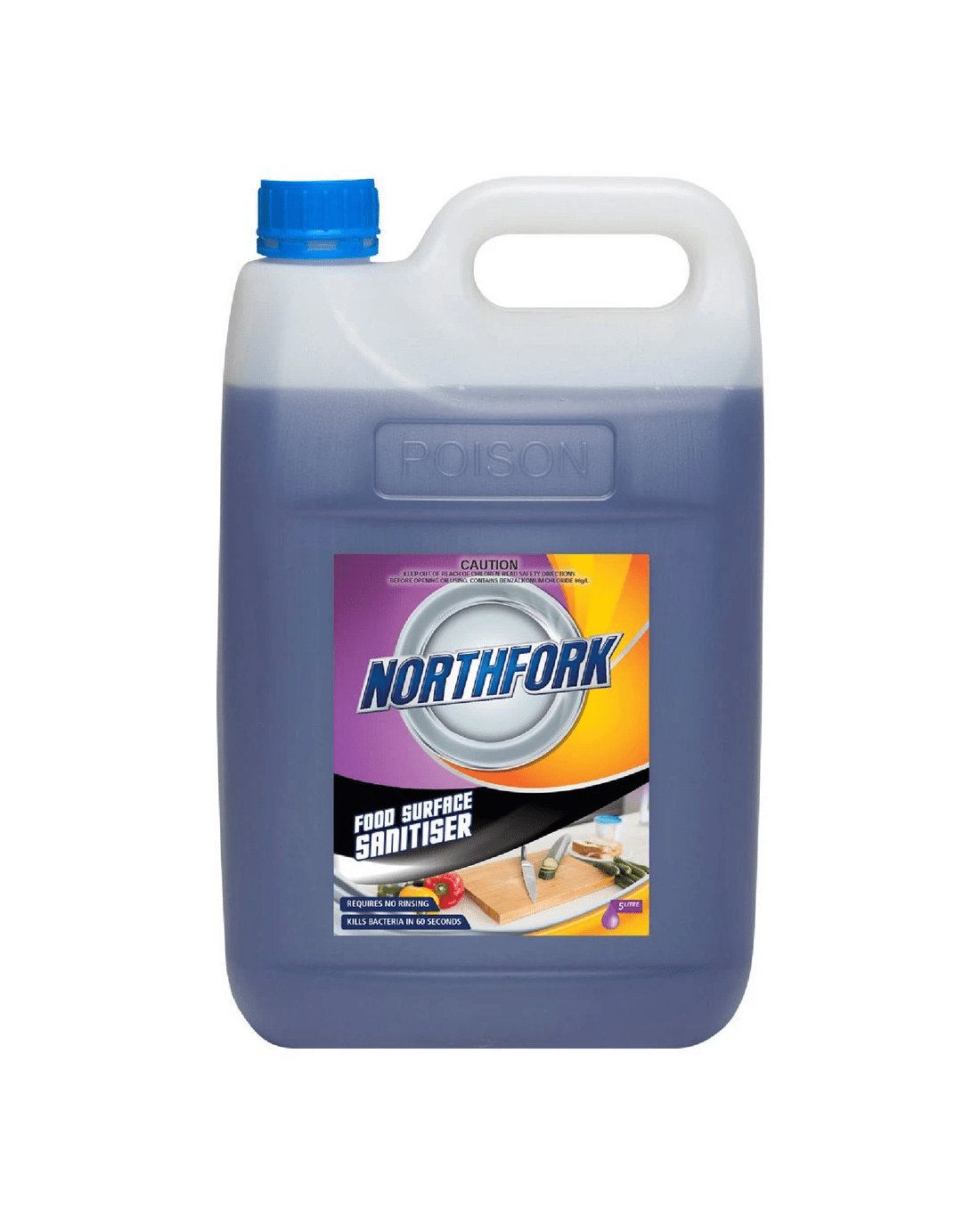Northfork Food Surface Sanitiser is formulated specifically for use in food operations to kill a broad spectrum of bacteria in only 1 minute. When used correctly the surface doesn't require rinsing which makes this an effective, easy to use sanitising solution.