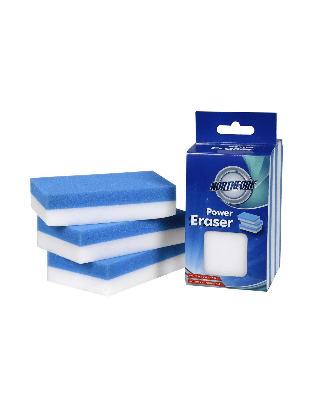 Northfork Power Erasers have a melamine foam construction to quickly and easily remove marks and stains from almost any hard surface. Each eraser is long lasting and can be reused again and again.